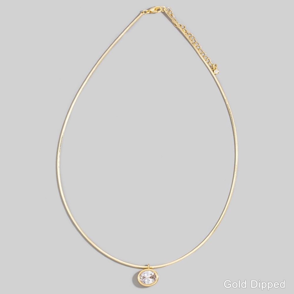This piece is the epitome of sophistication and elegance, this pendant necklace reveals an intricate gold snake chain oval cubic zirconia design. Perfect for dressing up your favorite outfit, this pendant necklace is a must-have. Available in 2. This item is sold in packs of 1.