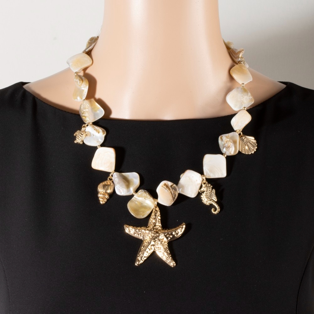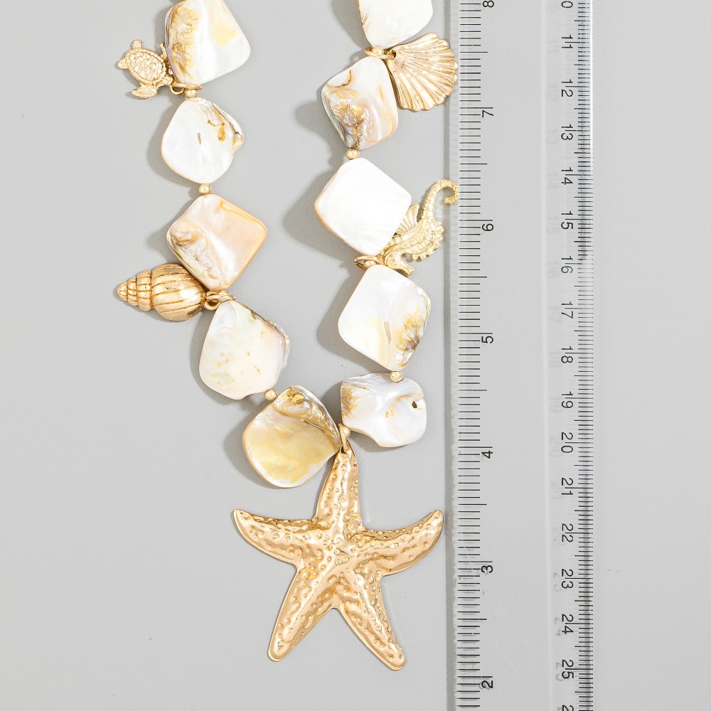 Gold Starfish & Sea Charm Drop Shell Stone Necklace