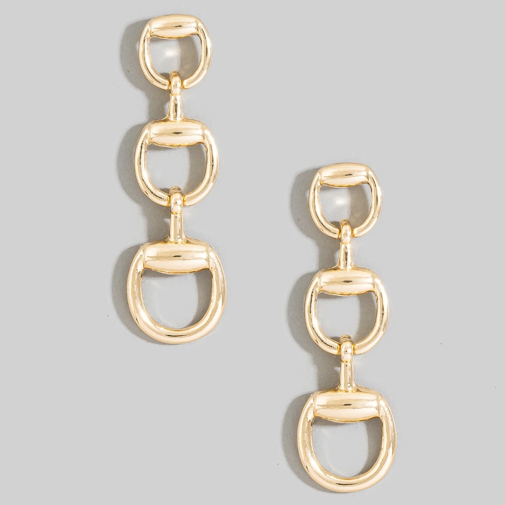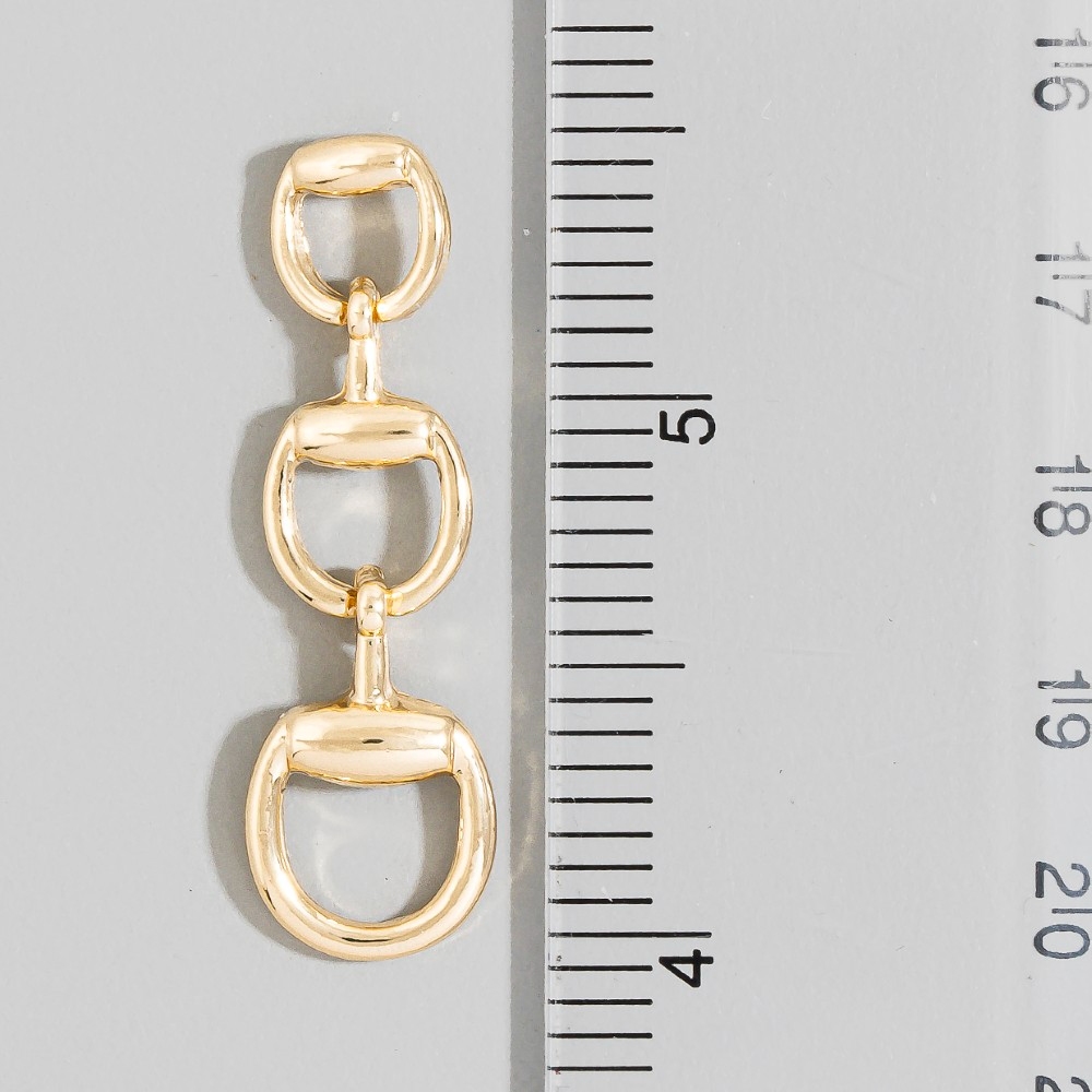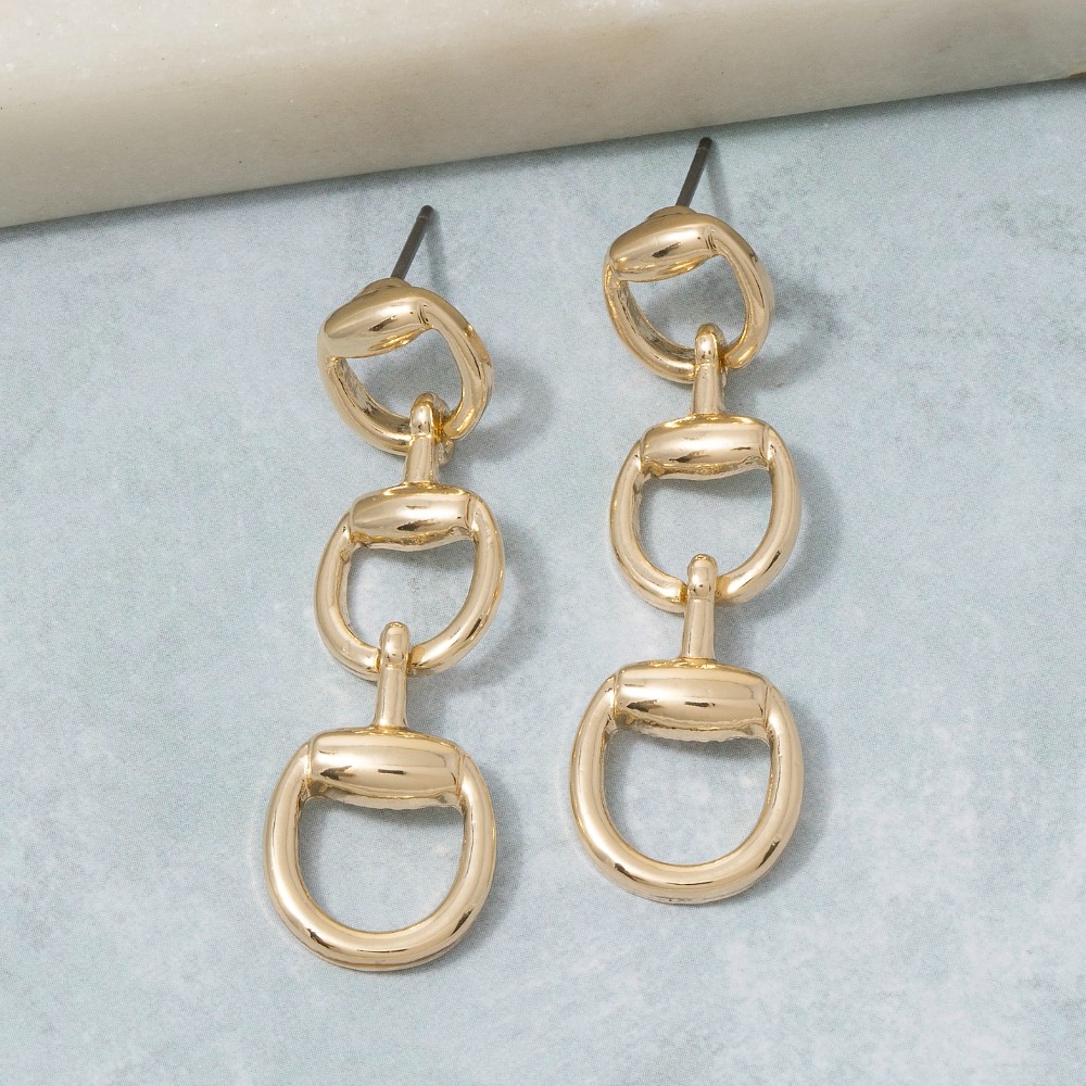 • Perfect for any occasion, this pair of drop earrings incorporates a flawless gold triple horsebit design. Perfect for adding a pop of color or texture to any outfit, this pair of drop earrings is a must-have. Available in GD. This item is sold in packs of 1.