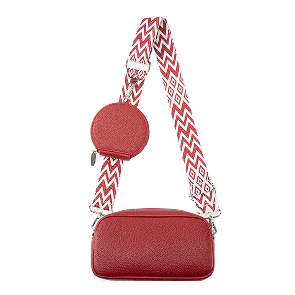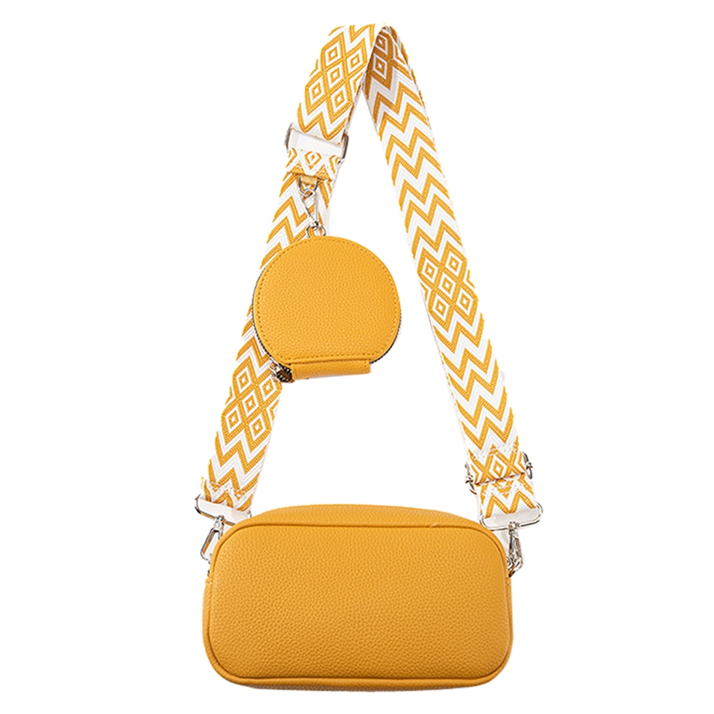 The perfect way to add some sparkle to your outfit, this crossbody bag features a distinct guitar strap 2 in 1 camera design. This versatile crossbody bag adds a touch of elegance to any outfit. Available in BK, BL, LV, MD, OLV, RD, ST, WT. This item is sold in packs of 1.