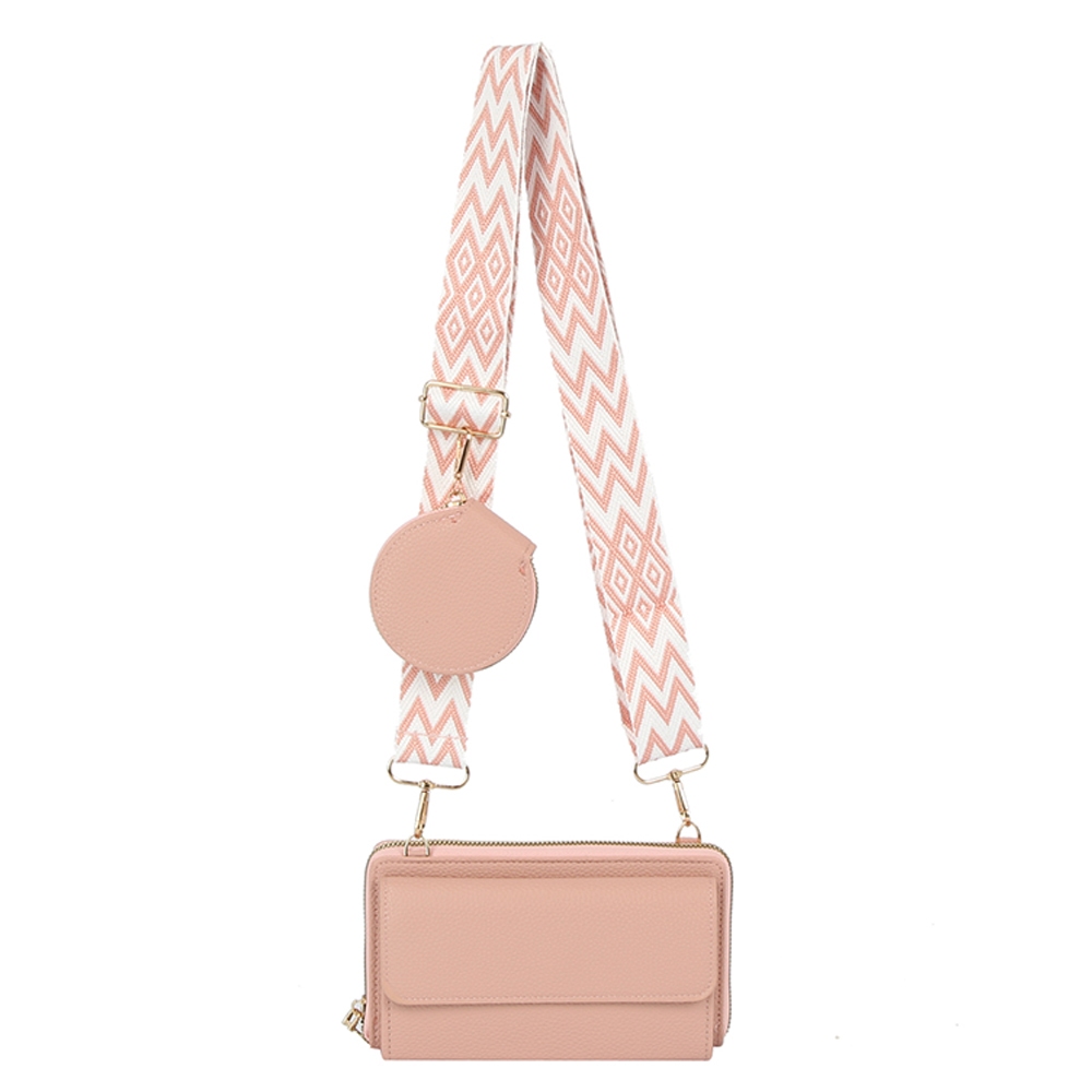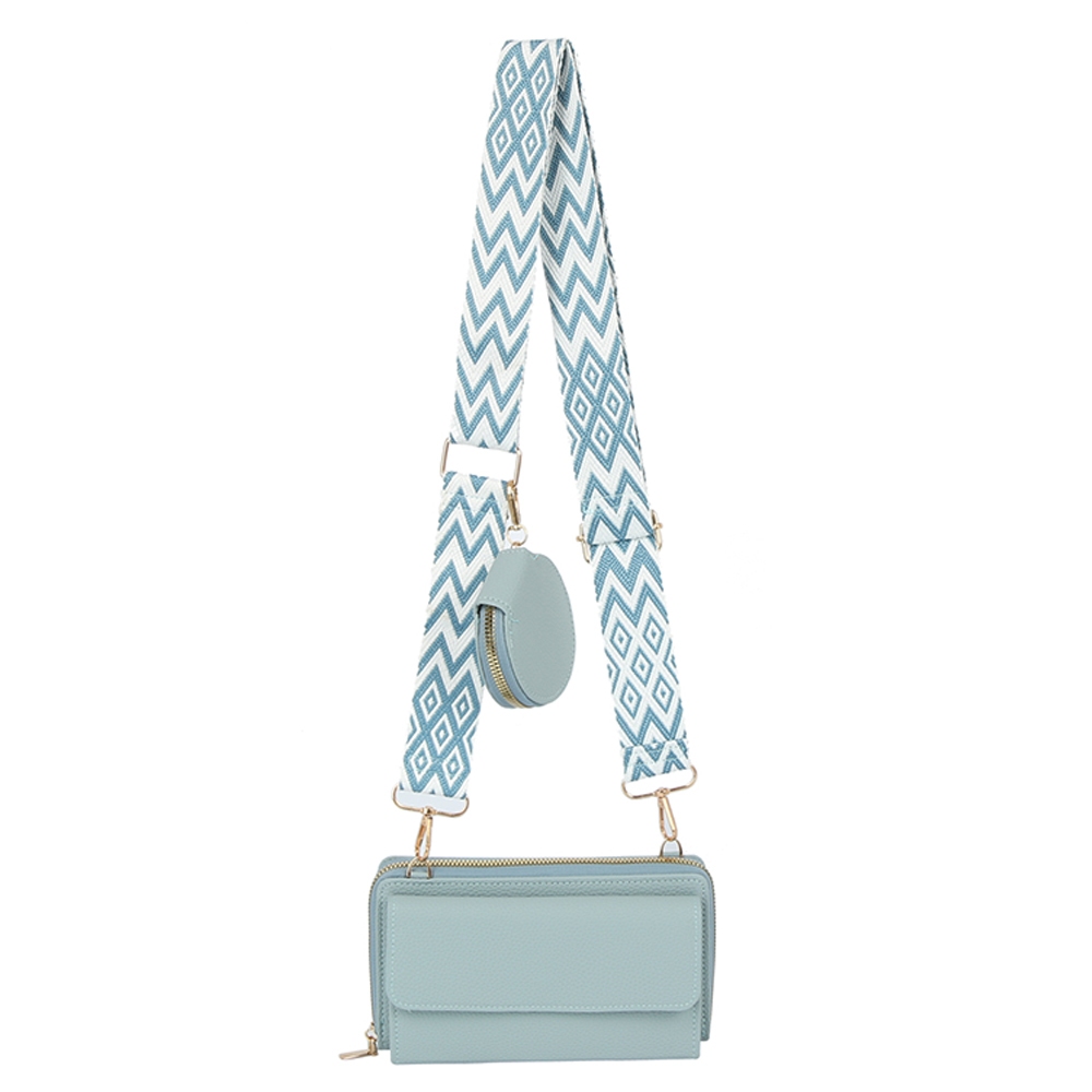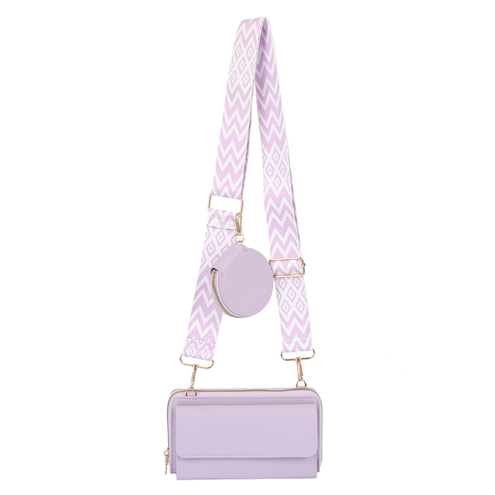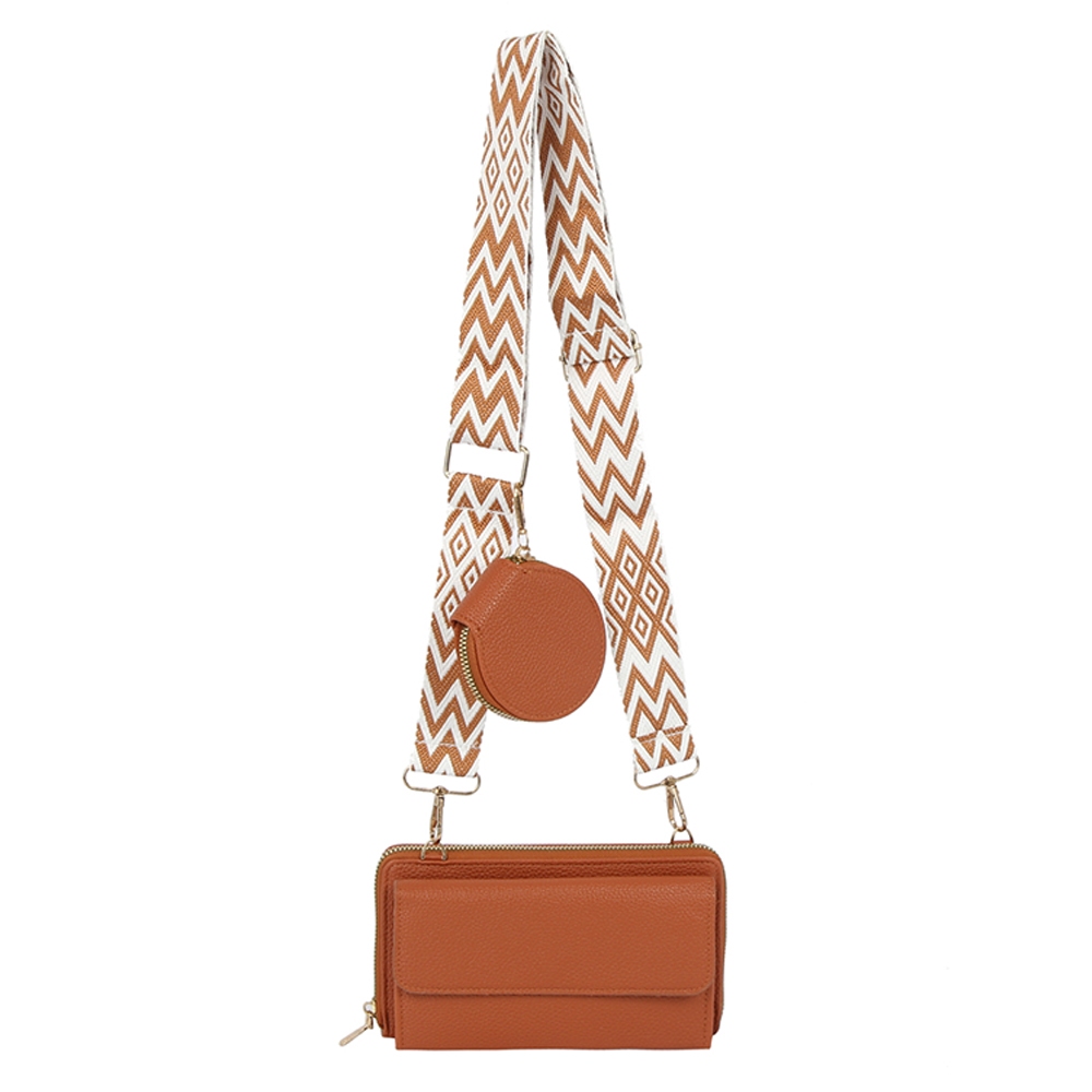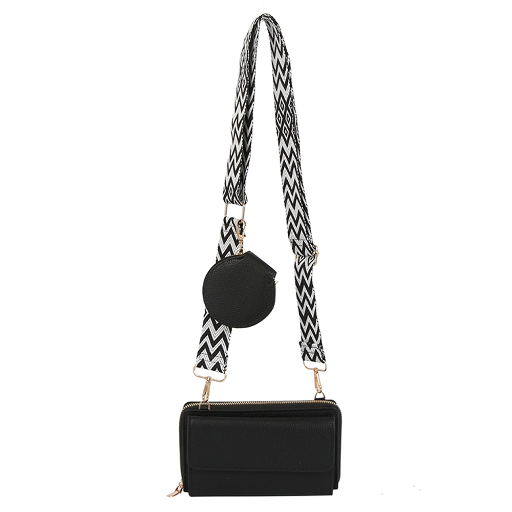 A classic design with a modern twist, this clutch bag includes a stunning guitar strap 2 in 1 crossbody wallet design. Upgrade your fashion game with this versatile clutch bag, a timeless addition that complements any outfit seamlessly. Available in BK, BL, BS, LV, OR. This item is sold in packs of 1.