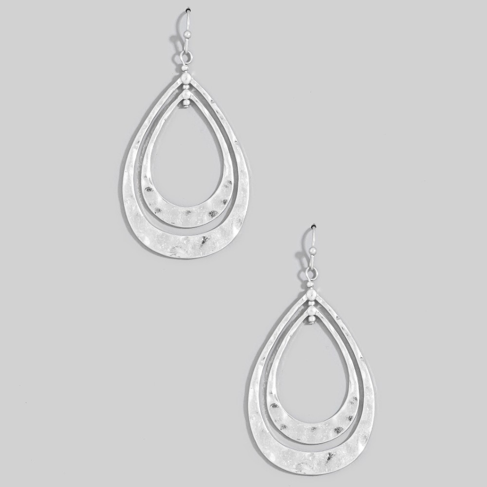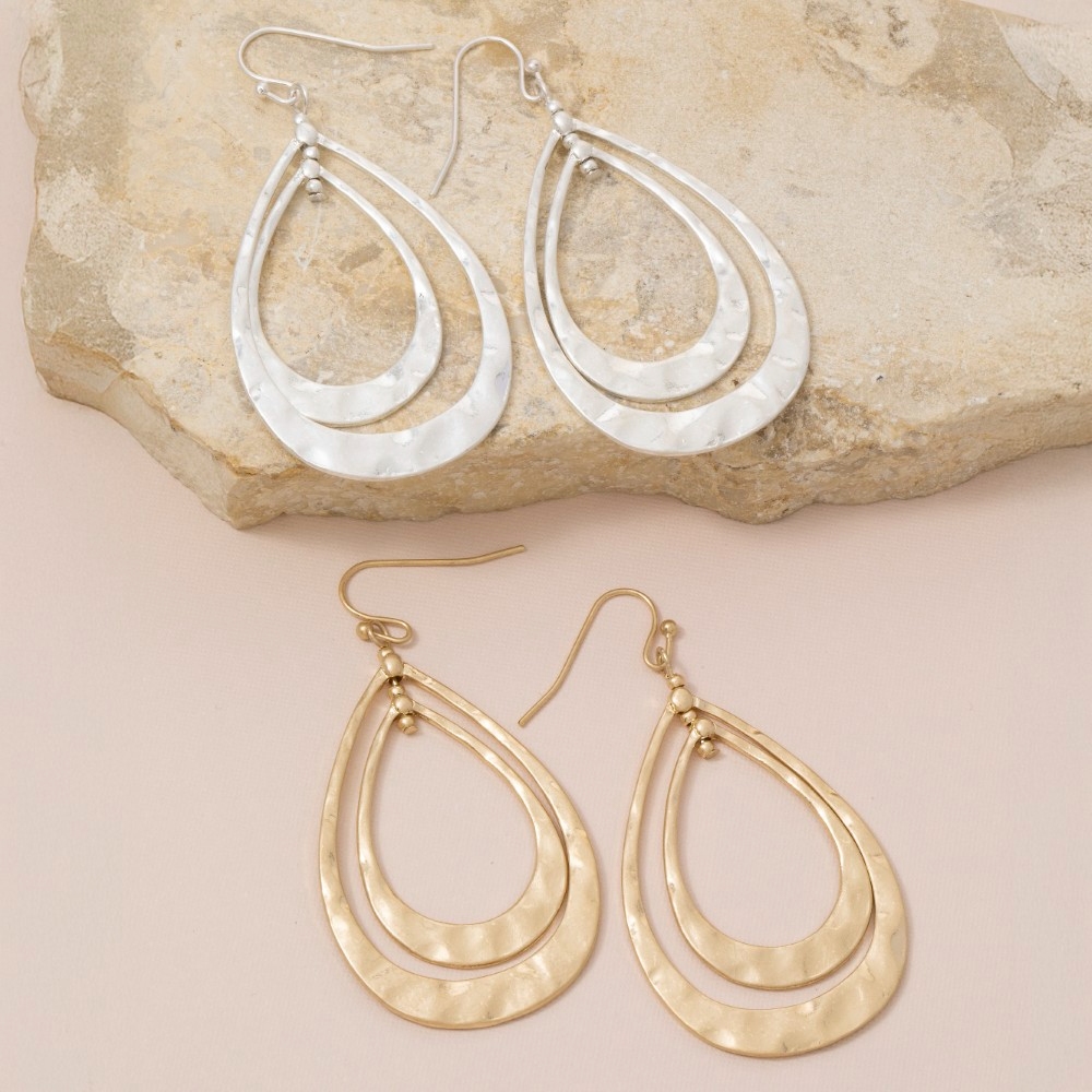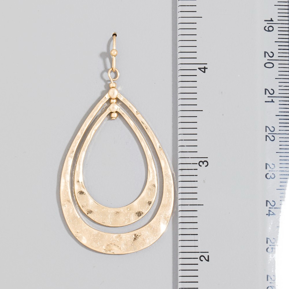 • A piece that will never go out of style, this pair of dangle earrings displays a unique hammered double teardrop layered design. Redefine your fashion identity with this versatile pair of dangle earrings, a timeless piece that complements any wardrobe. Available in WG, WS. This item is sold in packs of 1.