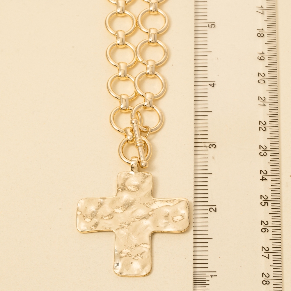 - This piece is both timeless and on-trend, this chain necklace incorporates a flawless hammered flat cross pendant toggle design. Take your style to the next level by incorporating this versatile chain necklace, a key element in achieving a polished look. Available in SGD. This item is sold in packs of 1.