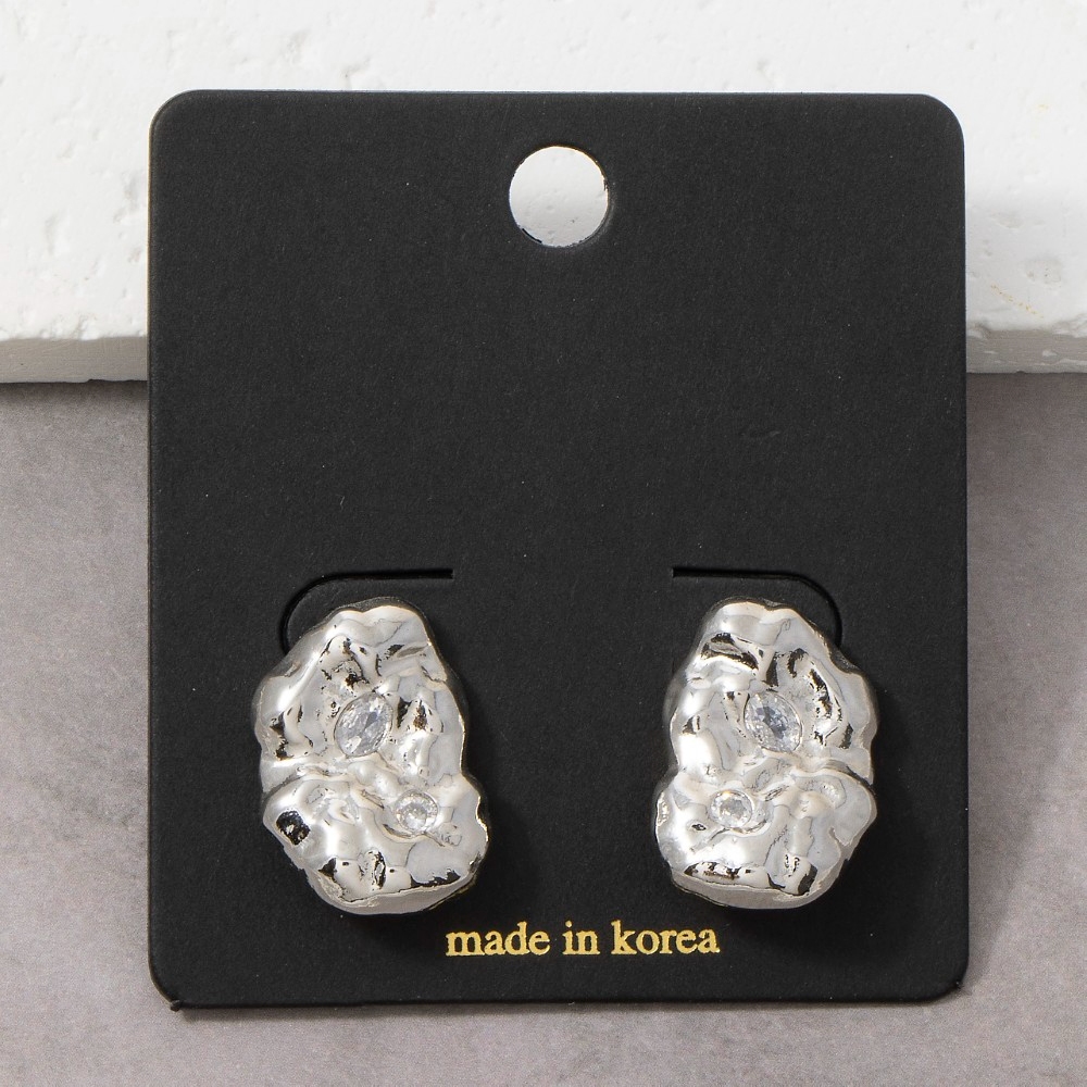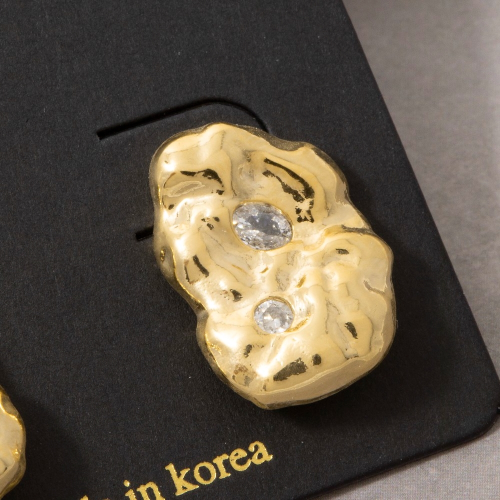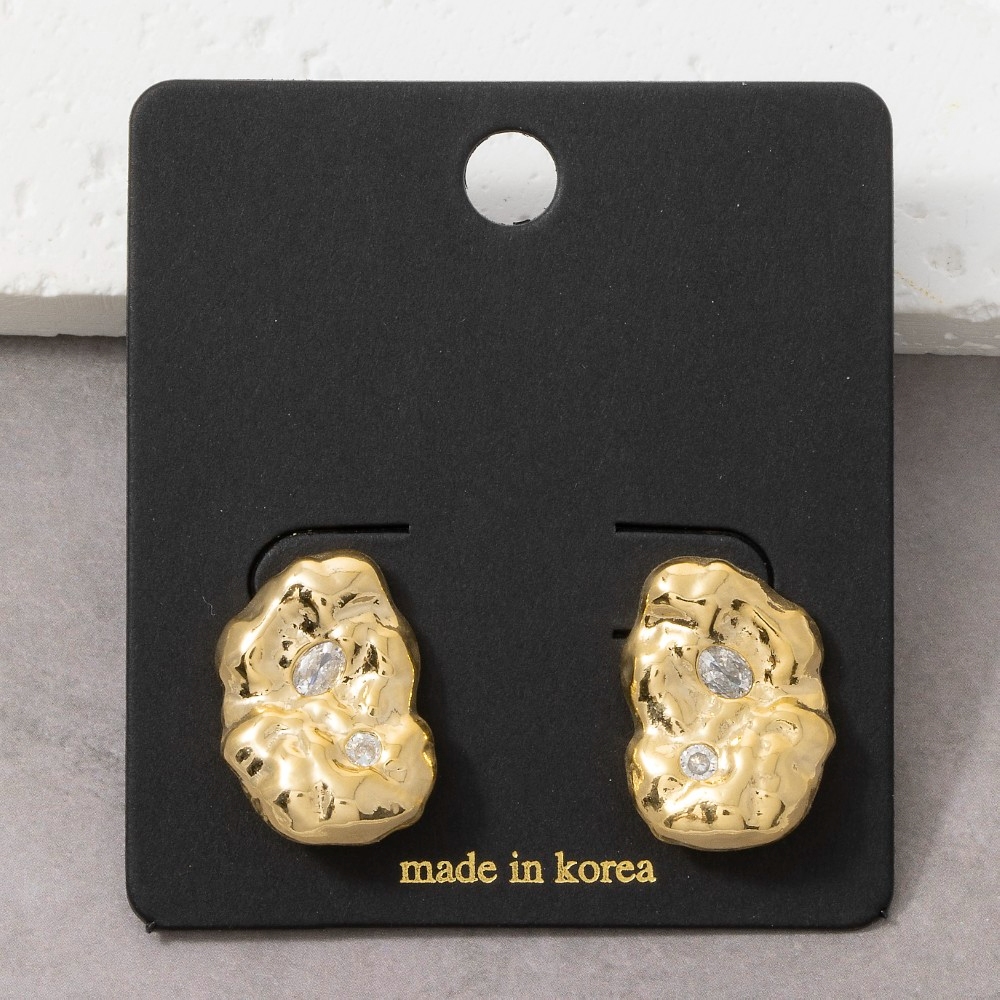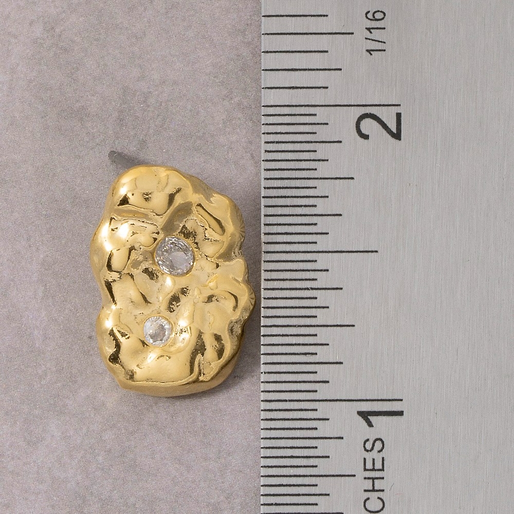 Unleash your inner fashionista, this pair of stud earrings incorporates a flawless hammered nugget with cubic zirconia accent design. The perfect pair of stud earrings for completing any outfit, whether you're dressing up or keeping it casual. Available in G, S. This item is sold in packs of 1.