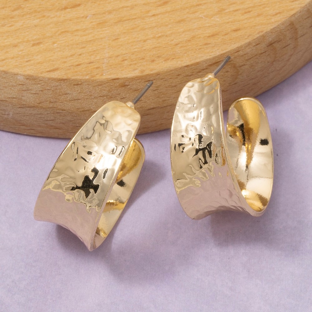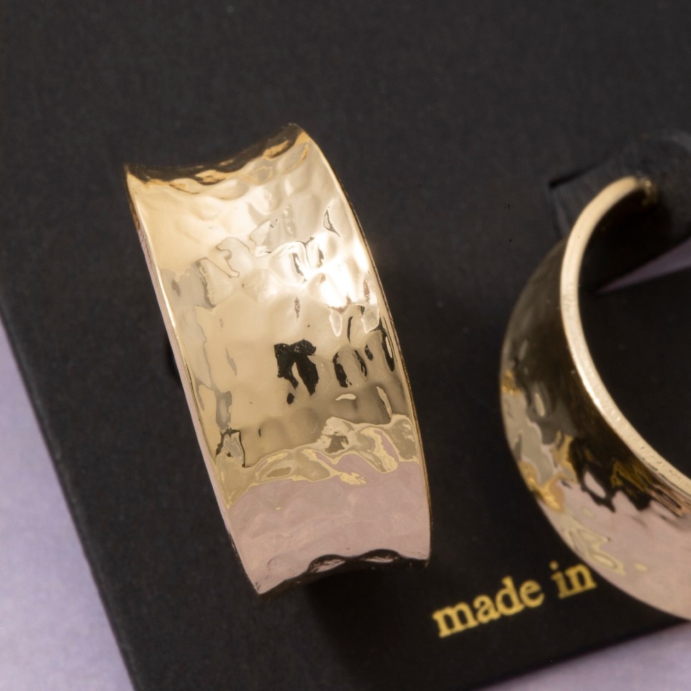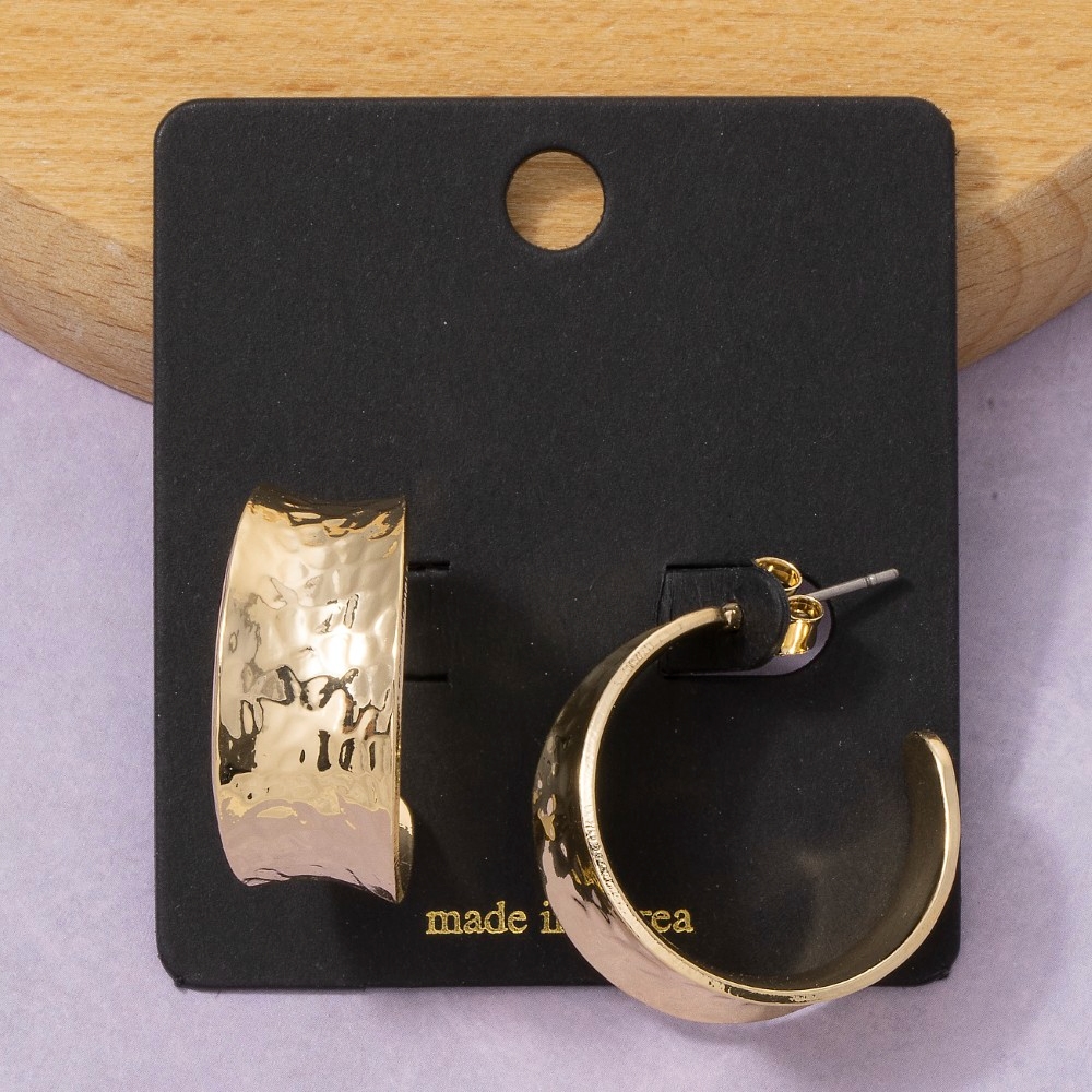 A bold and daring choice that is sure to impress, this pair of hoop earrings radiates a sleek hammered wide band design. Perfect for dressing up or down, this versatile pair of hoop earrings adds a touch of sophistication to any look. Available in G. This item is sold in packs of 1.