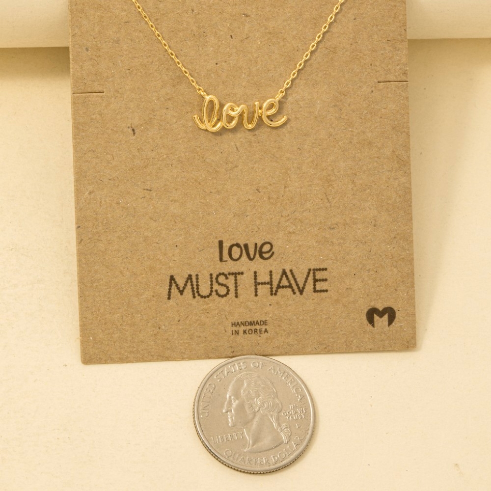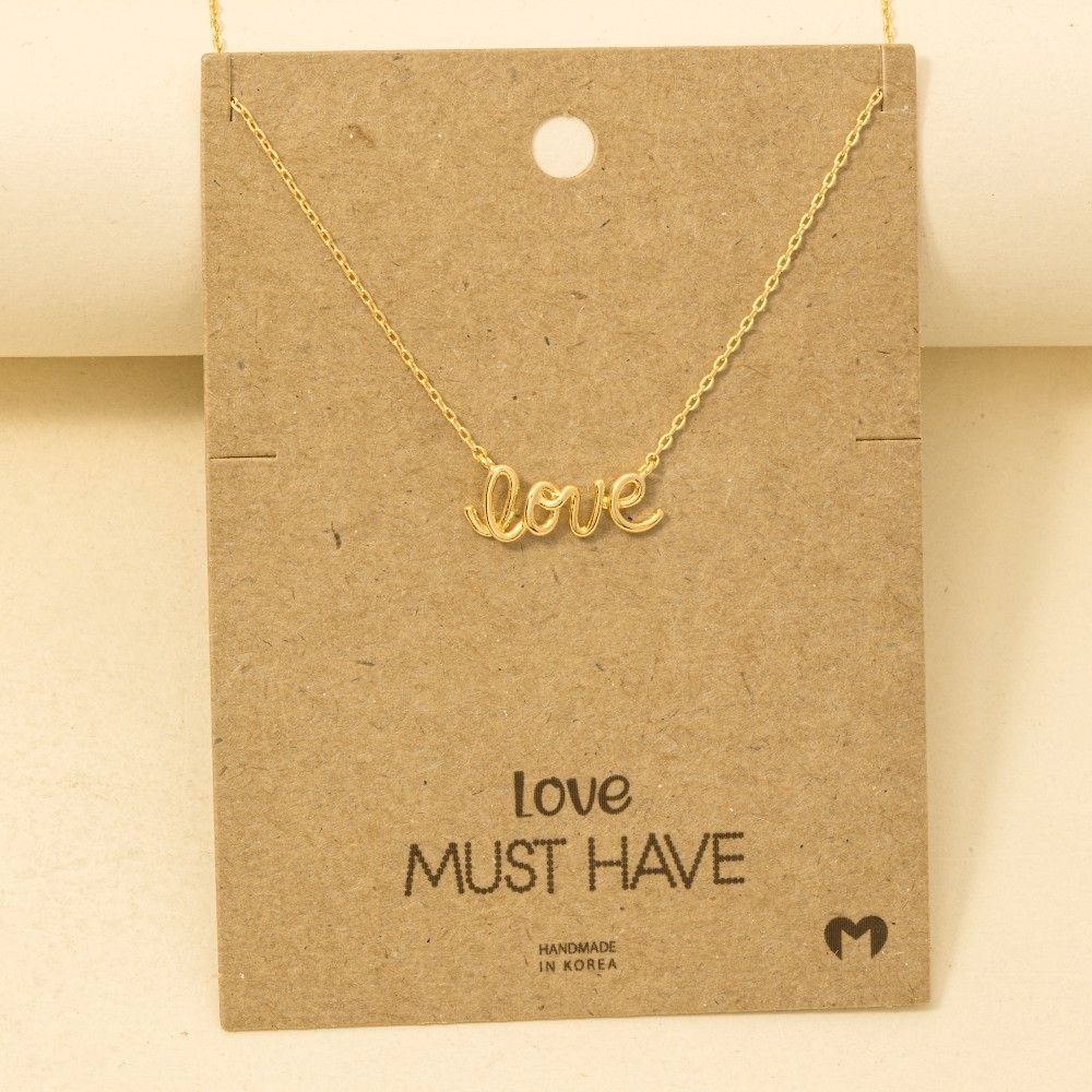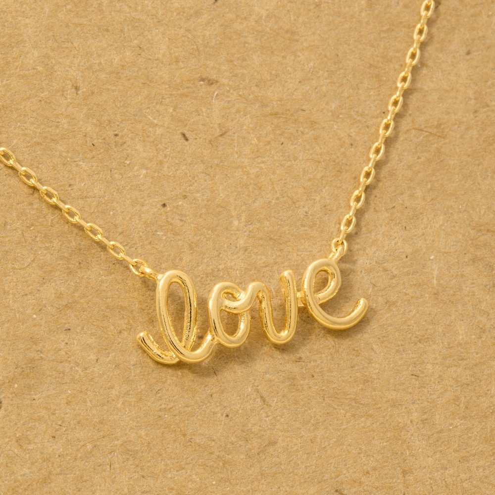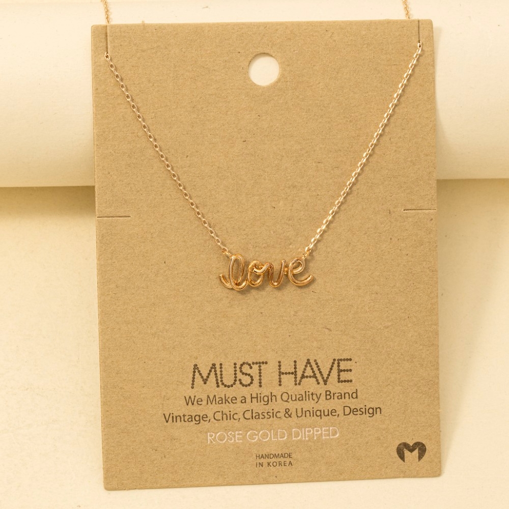 • Elevate any look, this trending necklace possesses a fine handwritten gold dipped love pendant necklace design. A stylish trending necklace that's perfect for complementing any outfit you wear. Available in G, R, S. This item is sold in packs of 1.