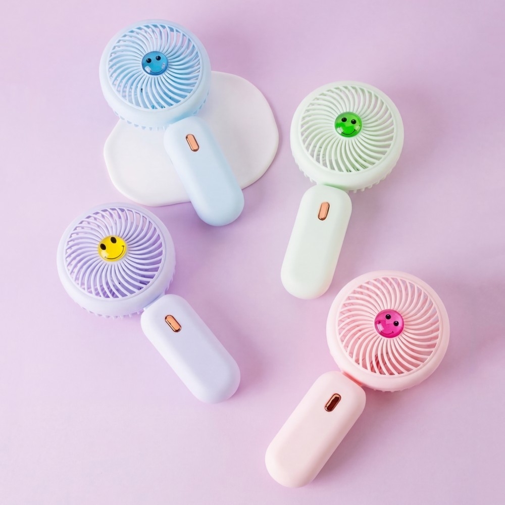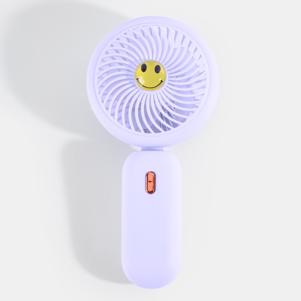 Stay on-trend and stand out from the crowd, this accessory contains a special happy face rechargeable handheld fan design. This accessory is an effortless way to add some personality to your outfit. Available in BL, GR, PN, PU. This item is sold in packs of 1.