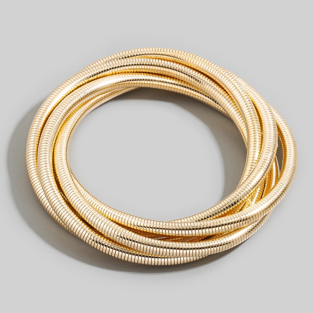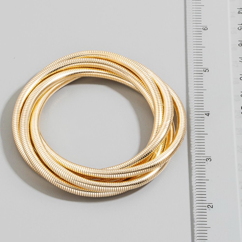Effortlessly stylish and always on-trend, this chain bracelet carries a charming interlocking snake chain bangle set design. A must-have chain bracelet that effortlessly enhances your style, no matter the occasion. Available in GD, RH. This item is sold in packs of 1.