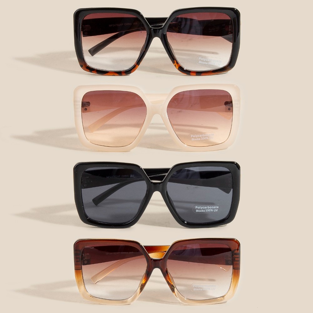 - Sleek, modern, and always stylish, this set of sunglasses flaunts a luxurious large Tortoise frame square sunglasses set design. This item is ideal for those who want to add some personality to their wardrobe without being too bold. Available in ASSORTED. This item is sold in packs of 12.