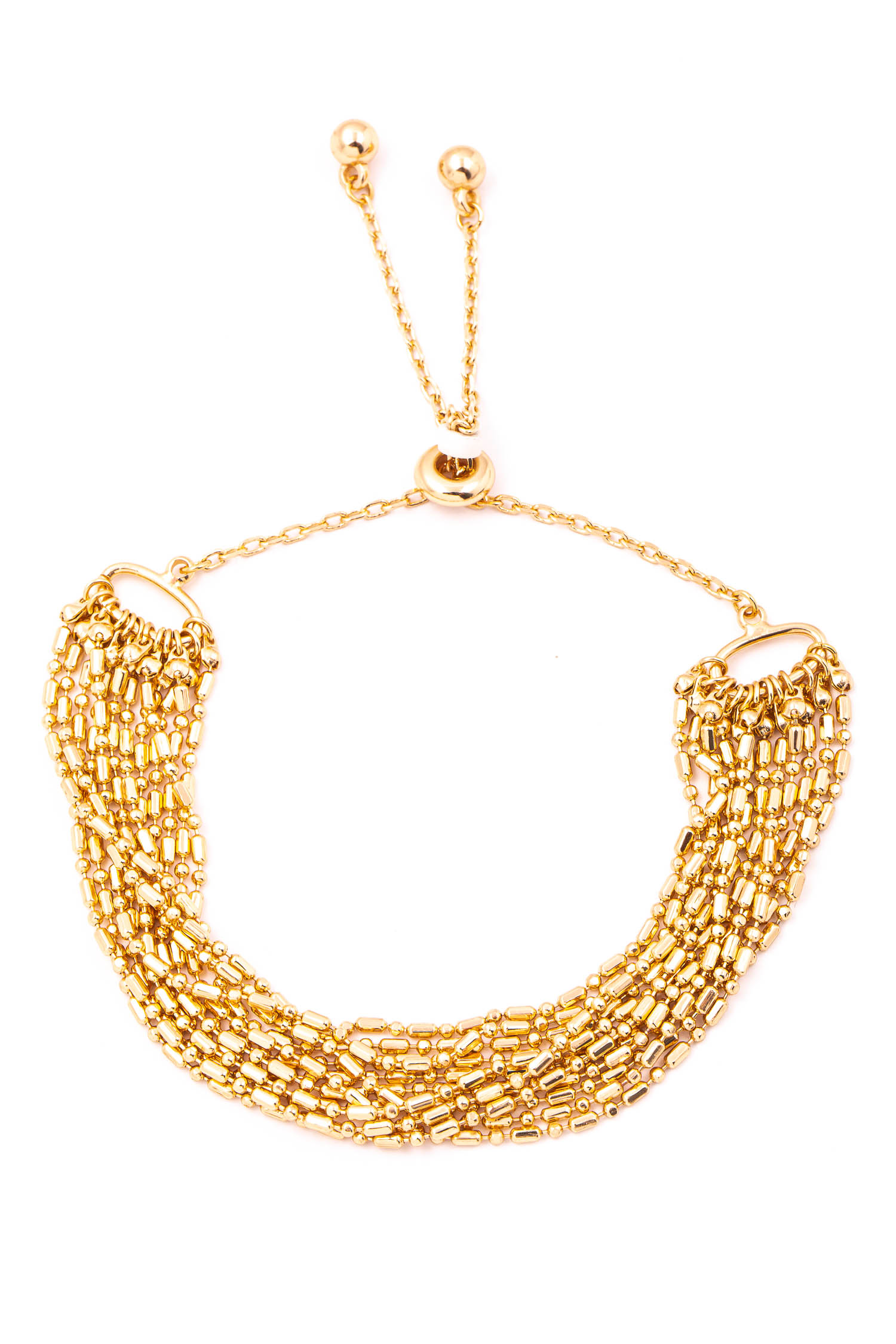 A must have bracelet have a layered adjustable chain bracelet design. Perfect for formal events! Available in G and S.