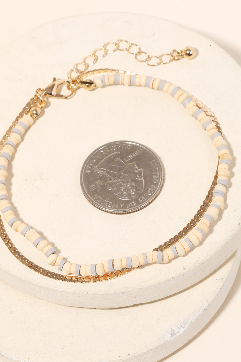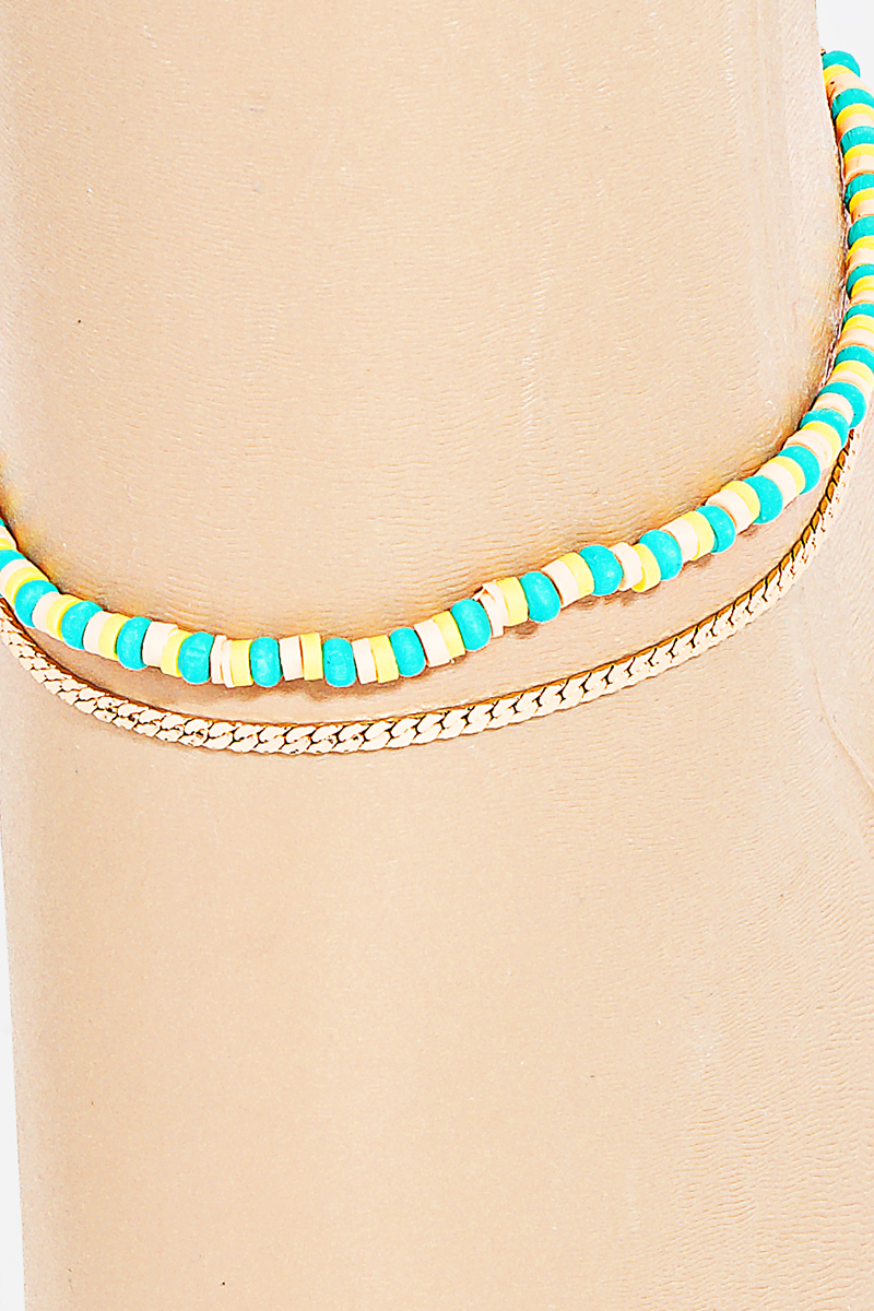 Perfectly polished and endlessly versatile, this anklet comes with a special layered bead snake chain design. A versatile anklet that's perfect for any occasion, adding a touch of elegance and style to any outfit. Available in GDIV, GDMNT, GDNAT, GDTQ. This item is sold in packs of 1.
