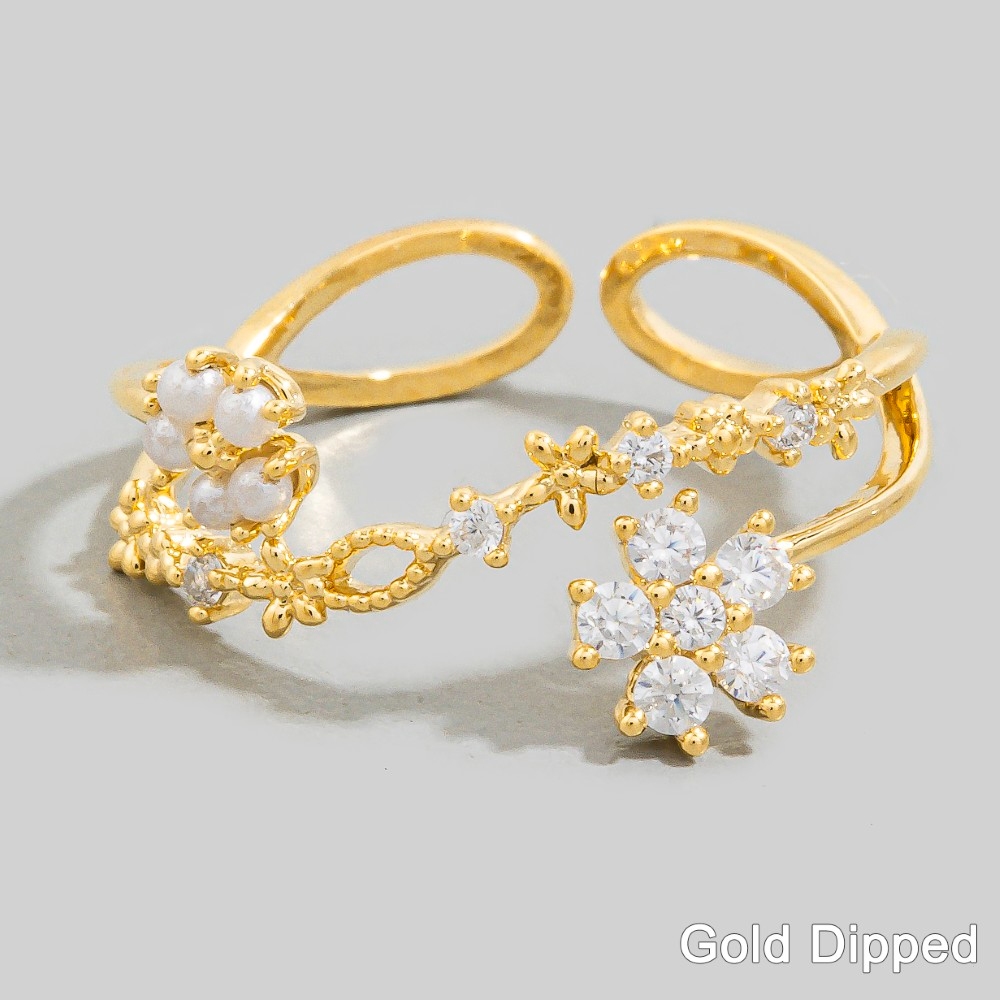 Bold and daring, this ring offers a remarkable layered double cubic zirconia flower open band design. Unleash the power of style with this versatile ring, perfect for enhancing the charm of your wardrobe. Available in G, S. This item is sold in packs of 1.