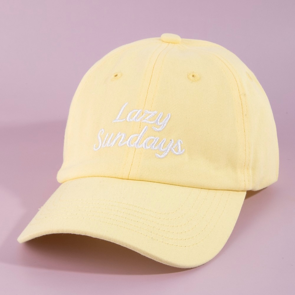 • A versatile and stylish addition to any wardrobe, this cap offers a remarkable lazy sundays design. Unlock endless styling possibilities with this versatile cap, creating a signature look that speaks volumes. Available in BK, BL, OR, YE. This item is sold in packs of 1.