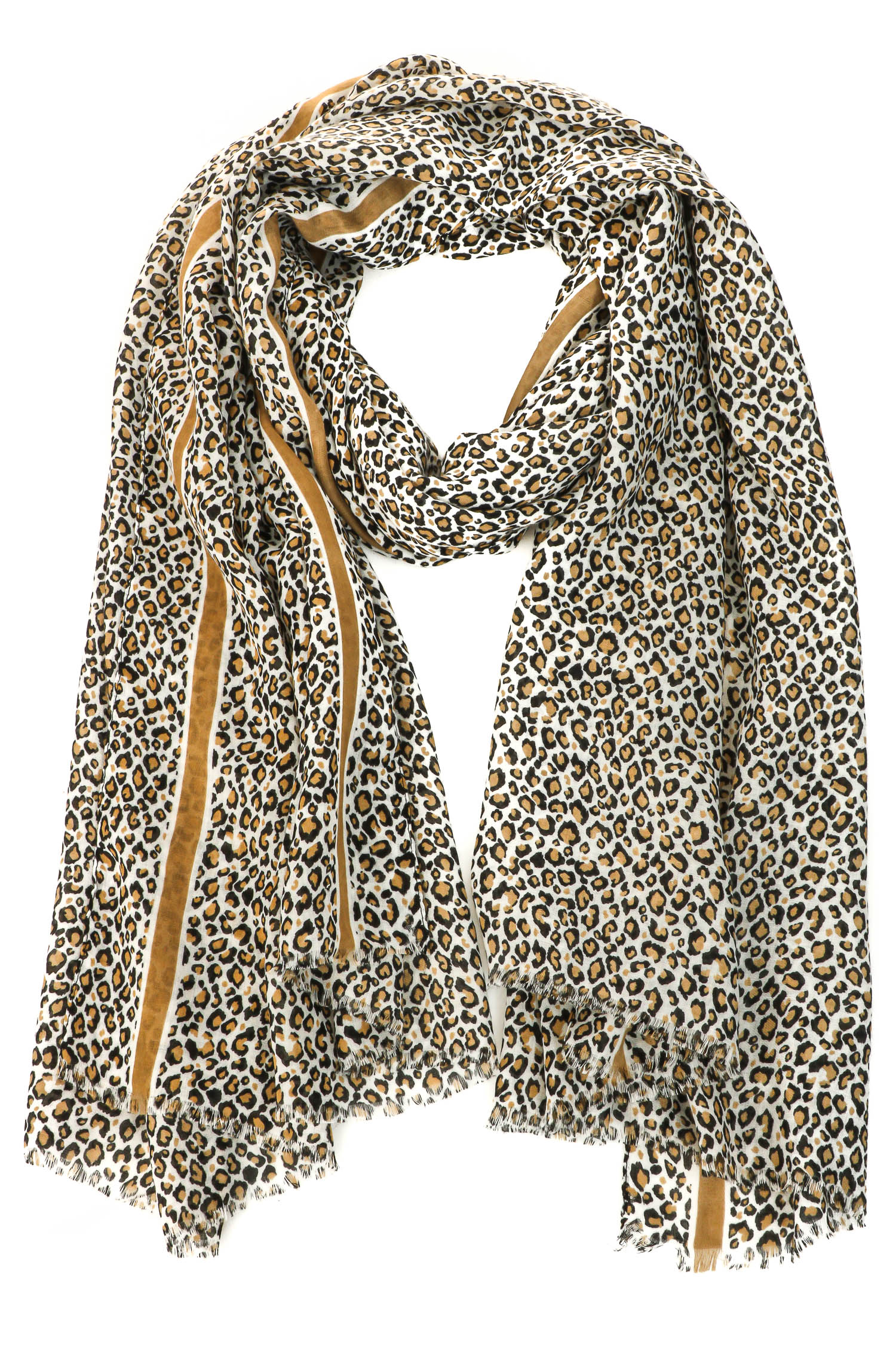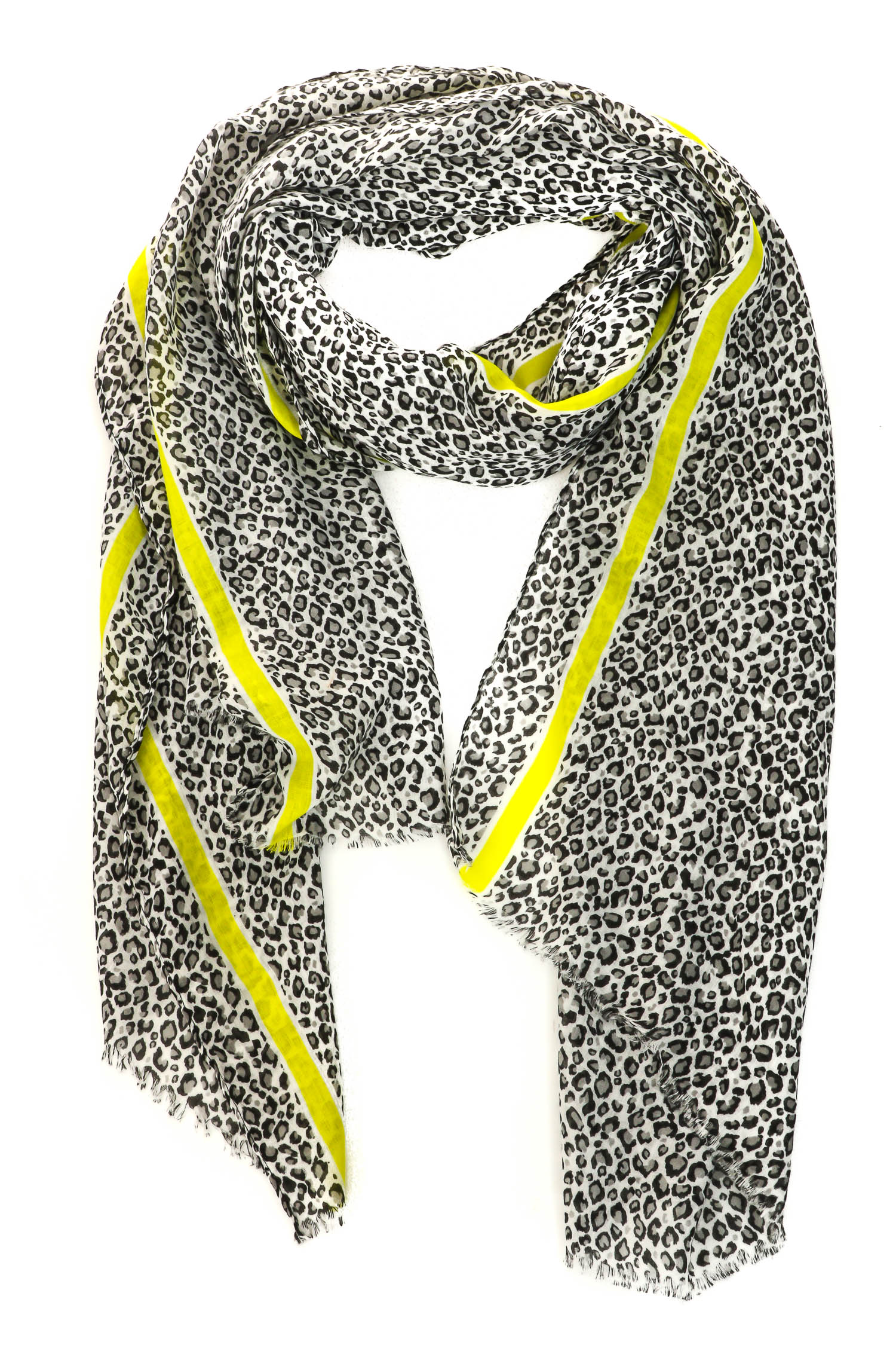 A gorgeous unique must have trending scarf that features a beautiful leopard print striped long scarf design. An excellent choice for any occasion! Available in Ka, Rd and Ye.
