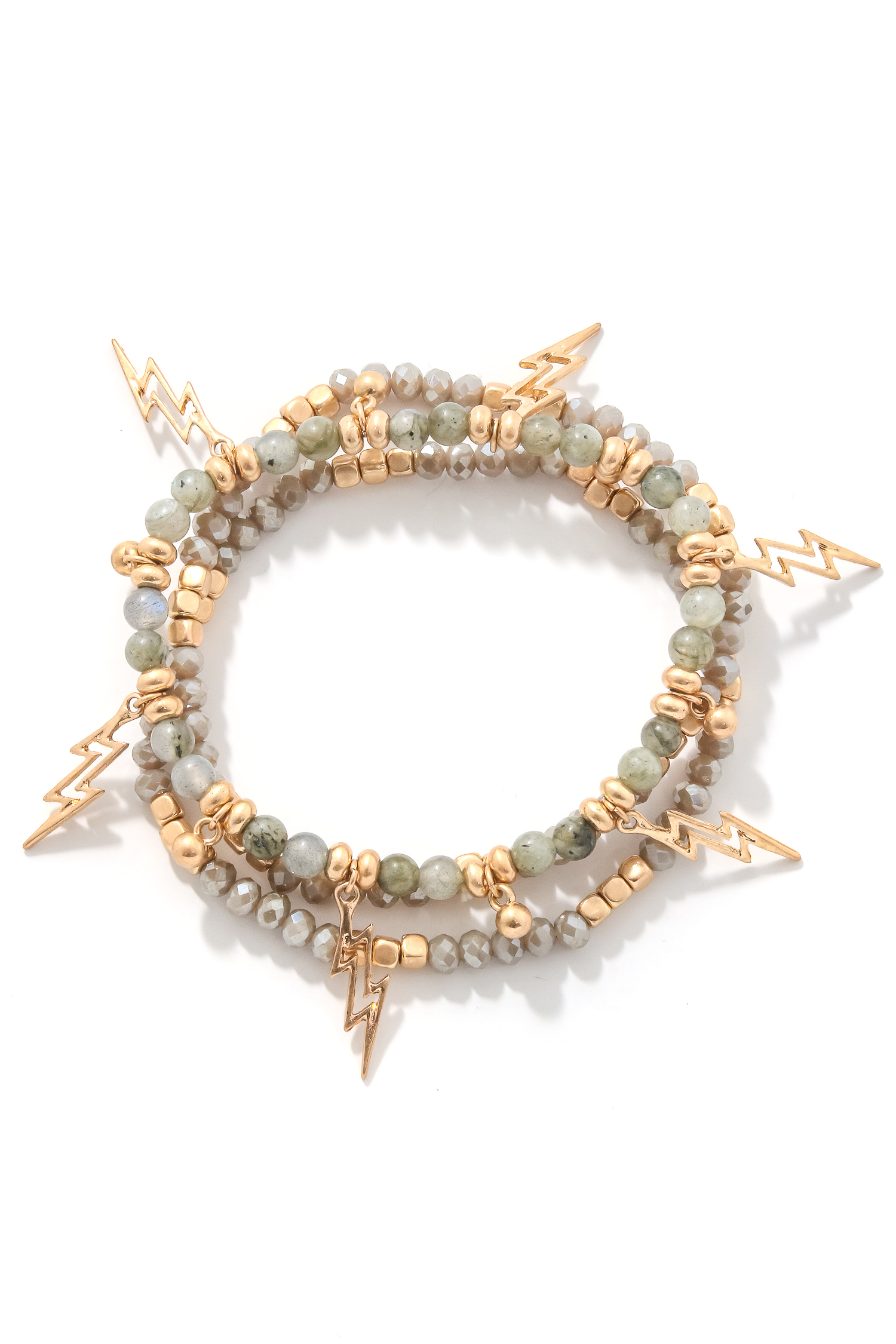 A gorgeous unique must have trending bracelet that features a beautiful lightning charm layered bracelets design. An absolutely gorgeous stunning must have. Available in Earth, Labradorite, Marble and Turquoise.