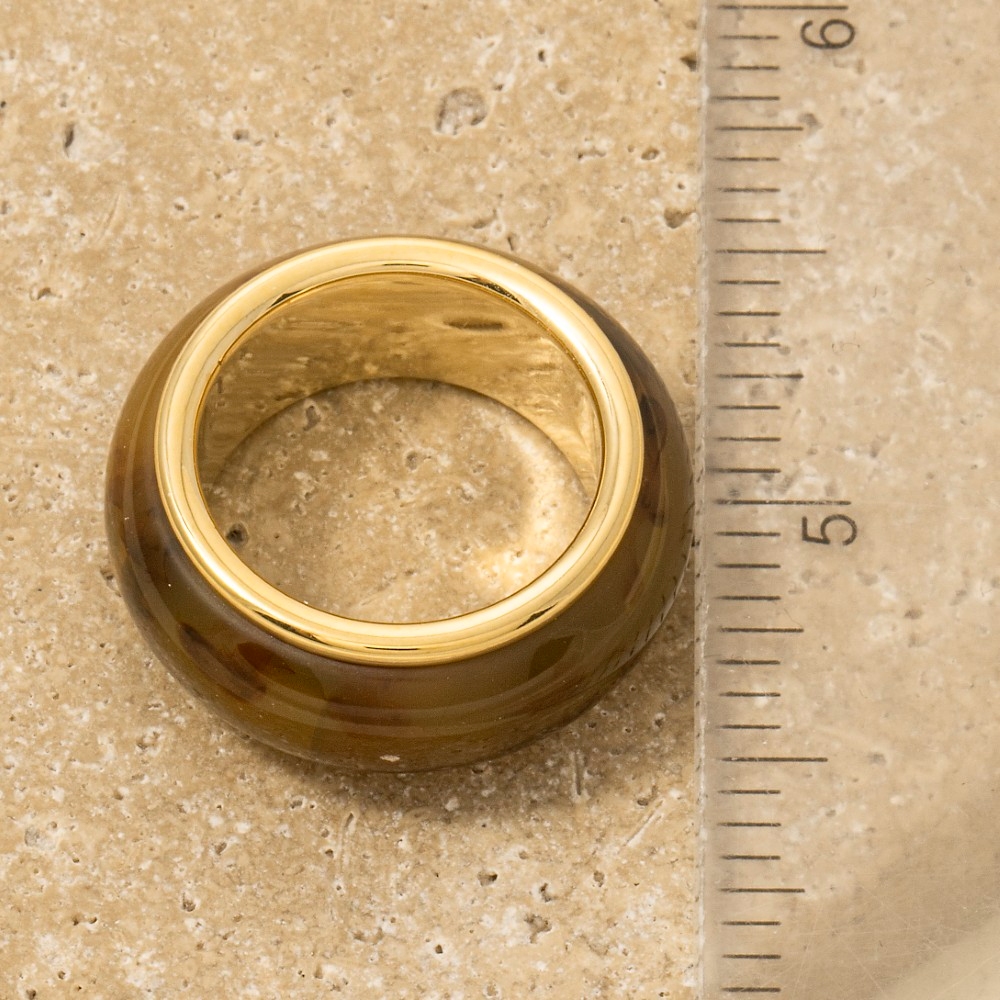 Perfect for any occasion, from casual to formal, this ring flaunts a luxurious metallic lined amber acrylic band design. Elevate your fashion IQ with this versatile ring, designed to seamlessly integrate into any style profile. Available in G. This item is sold in packs of 1.