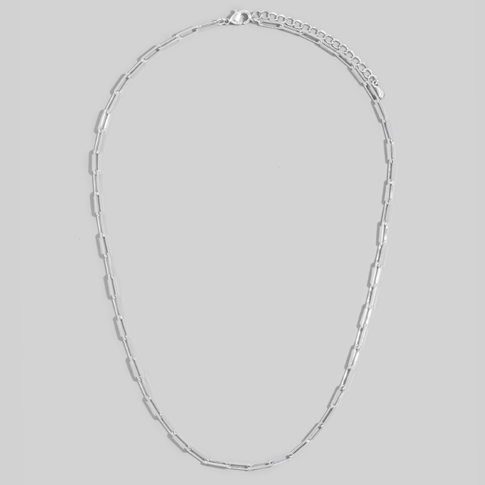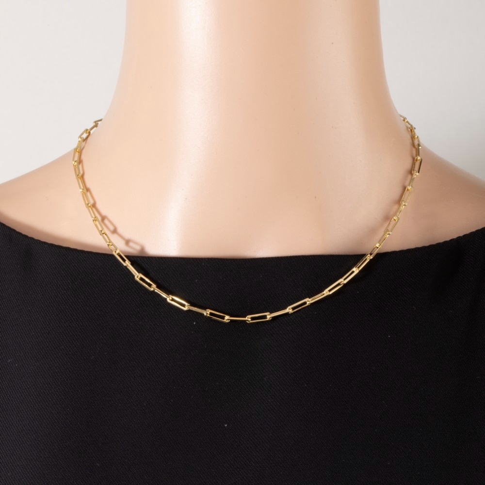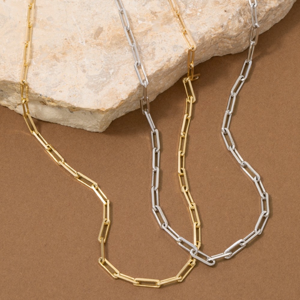 Sleek and modern, this chain necklace displays a unique metallic paperclip design. Elevate your personal style effortlessly with this versatile chain necklace, an essential component for a refined wardrobe. Available in G. This item is sold in packs of 1.