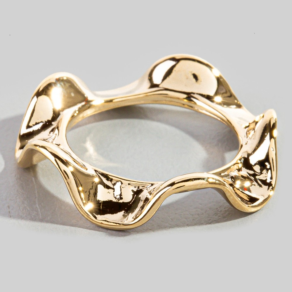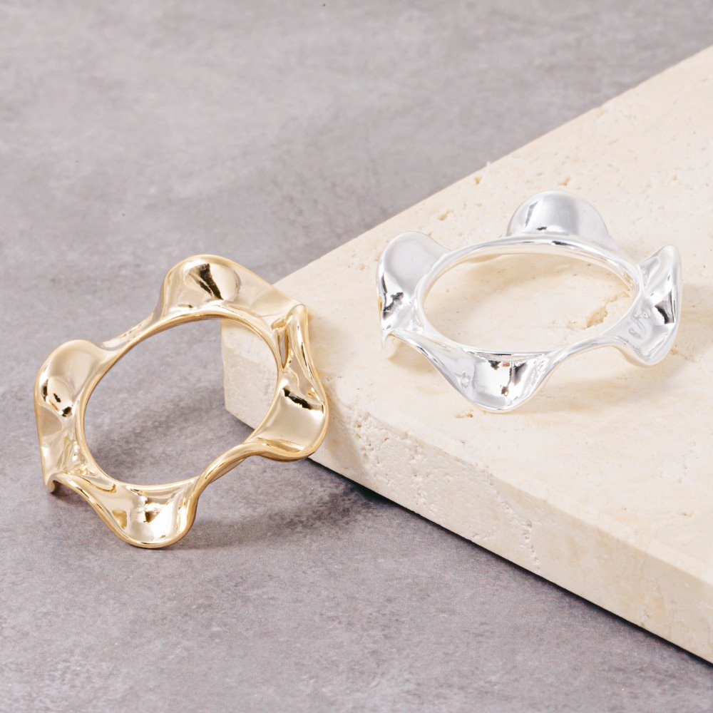A classic design with a modern twist, this ring evokes a captivating metallic sculpted wave design. Infuse elegance into your daily wardrobe with the versatile charm of this must-have ring. Available in G, S. This item is sold in packs of 1.
