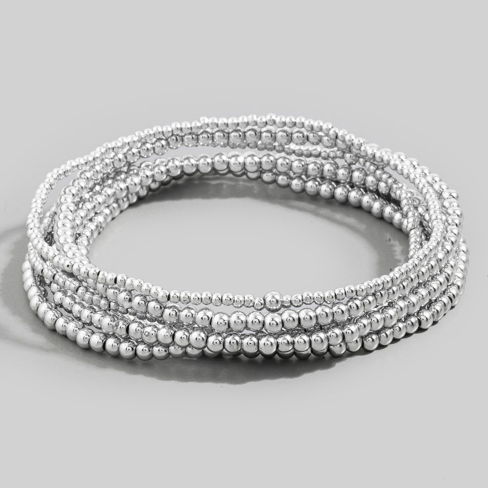 This piece is both timeless and contemporary, this bracelet features a distinct mini metallic beaded elastic set design. The perfect way to complete any outfit, whether you're dressing up or keeping it casual. Available in G, S. This item is sold in packs of 1.