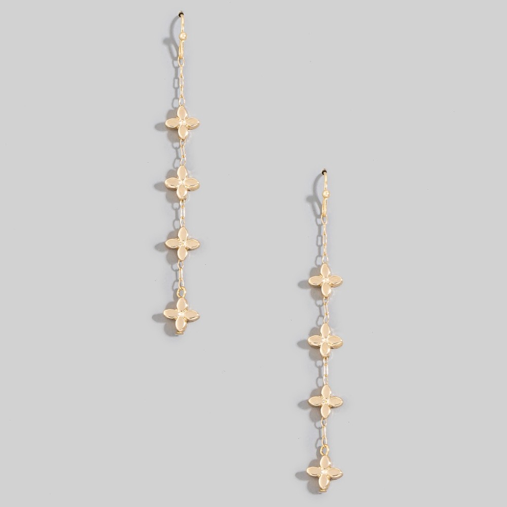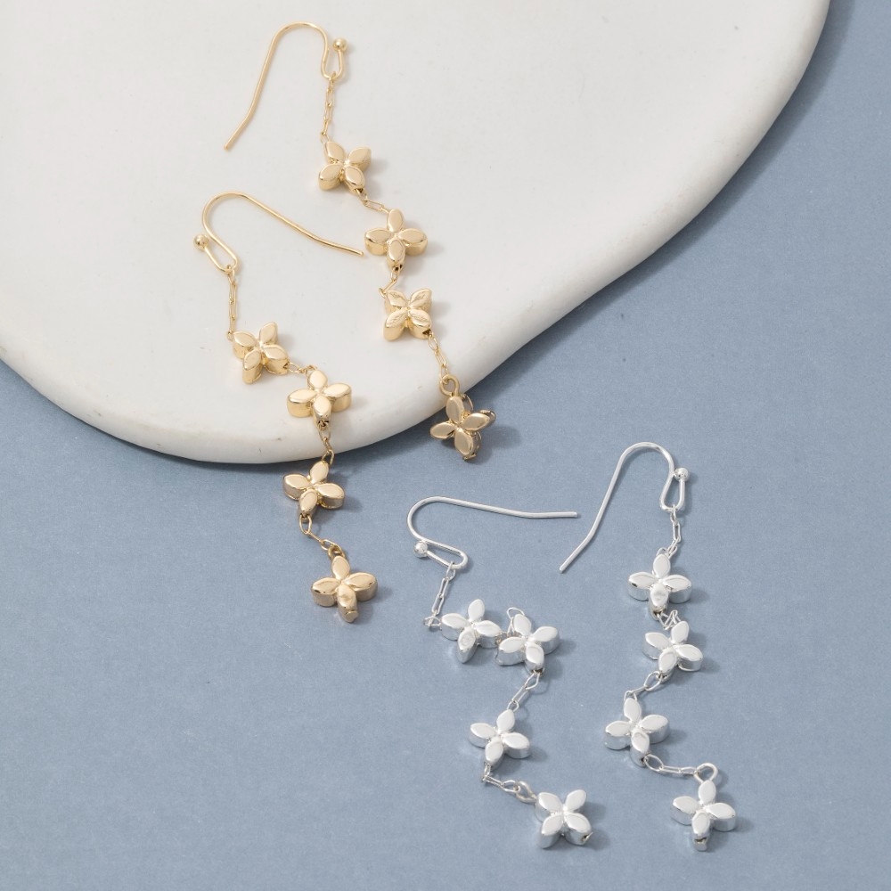 • Sleek and modern, this pair of dangle earrings encompasses a grand mini metallic flowers chain design. Elevate your fashion ensemble effortlessly with this versatile pair of dangle earrings, a stylish choice for the modern trendsetter. Available in SGD, SSV. This item is sold in packs of 1.