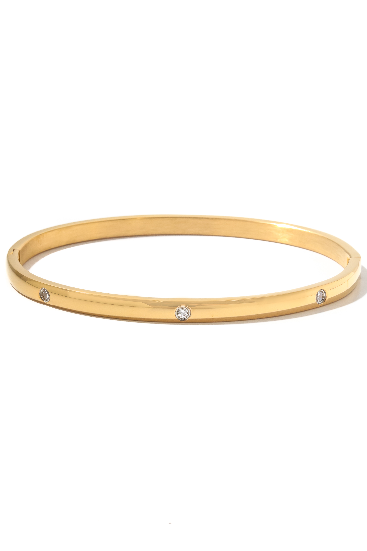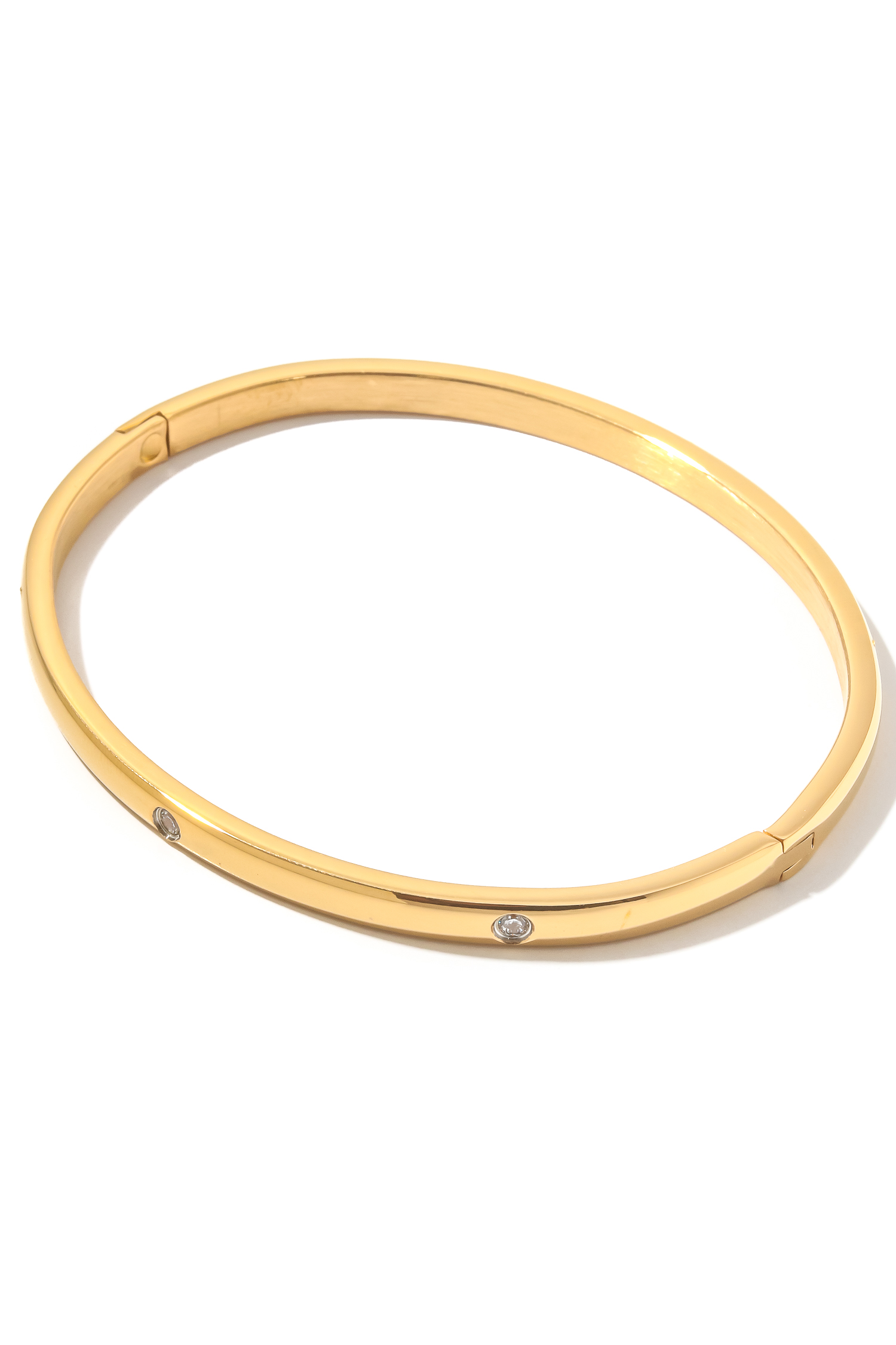 A simply stunning in season must have bracelet that features a beautiful mini stud metallic bangle bracelet design. Perfect for casual occasions! Available in G and S.