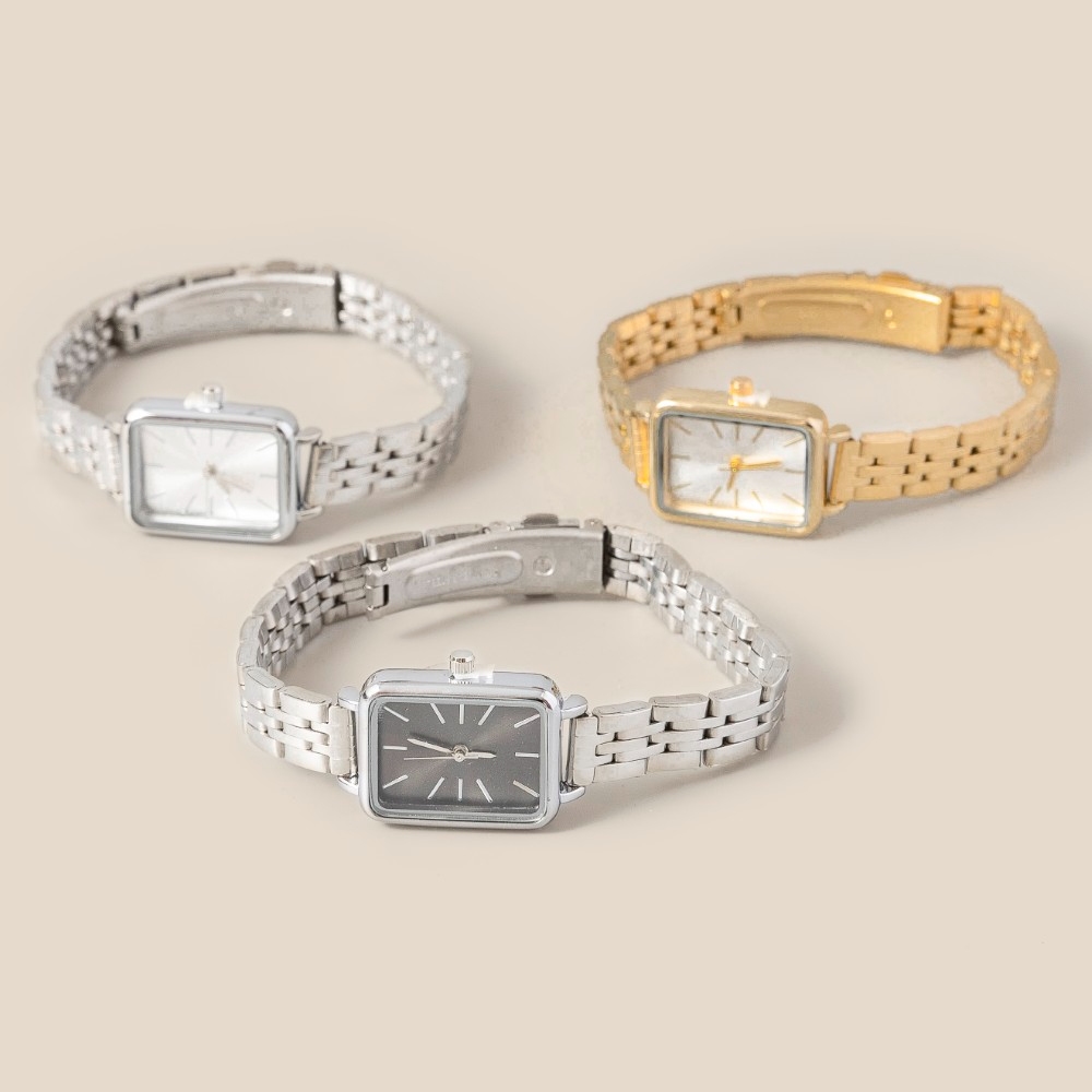 • Chic, sophisticated, and always in style, this accessory embodies a sophisticated minimalist rectangle watch design. A stylish accessory that's perfect for complementing any outfit you wear. Available in GWH, SBK, SWH. This item is sold in packs of 1.