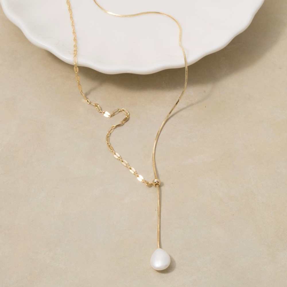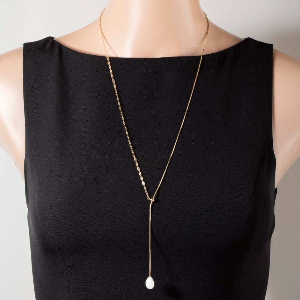 A stunning addition to any jewelry collection, this necklace showcases an alluring mixed chain pearl drop lariat design. Perfect for adding a touch of glamour and sophistication to any outfit, this necklace is a must-have. This item is sold in packs of 12.