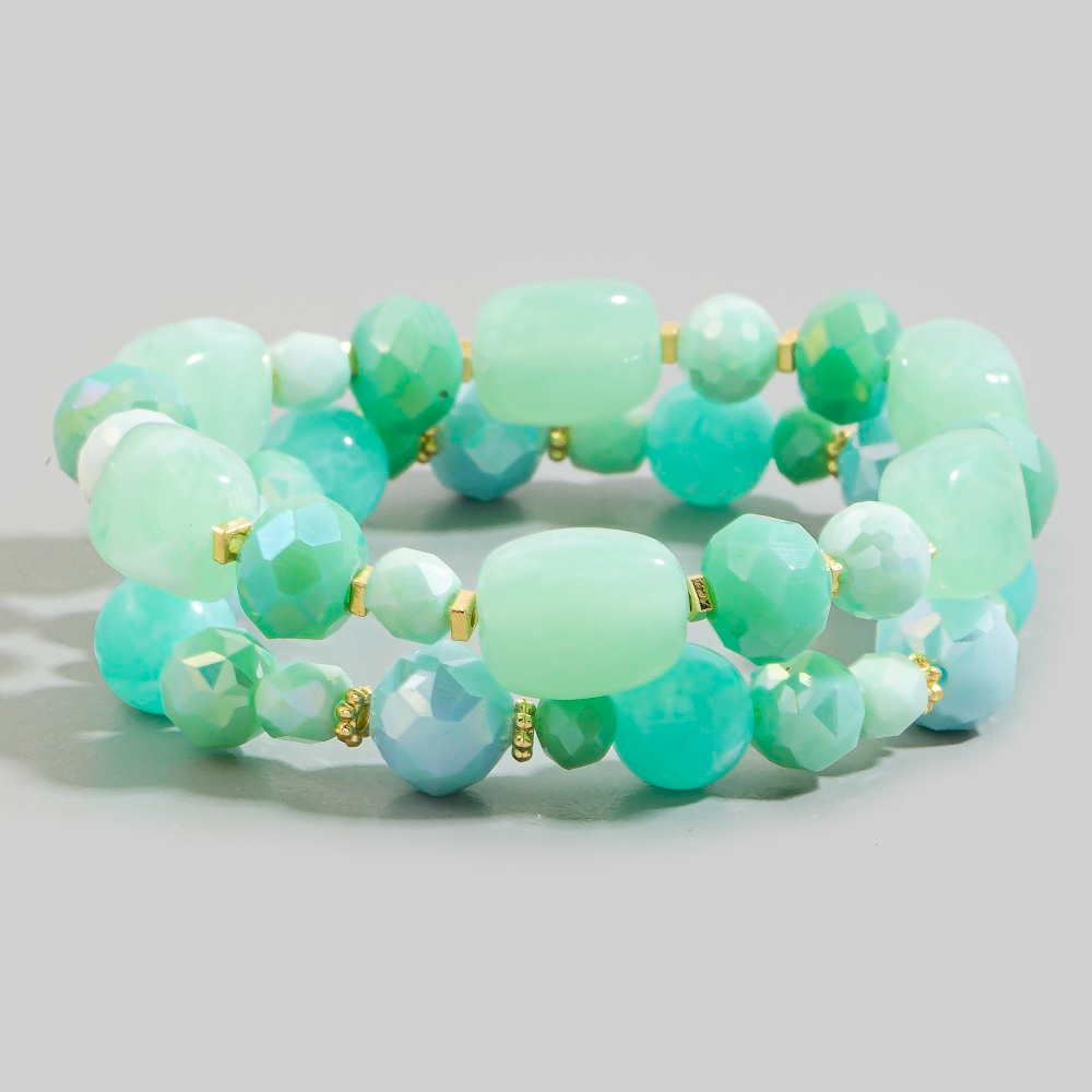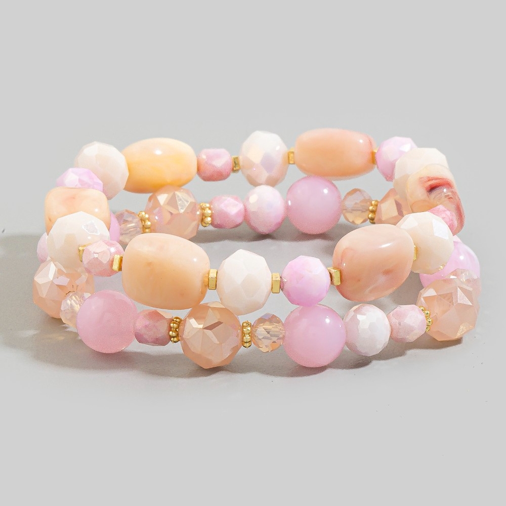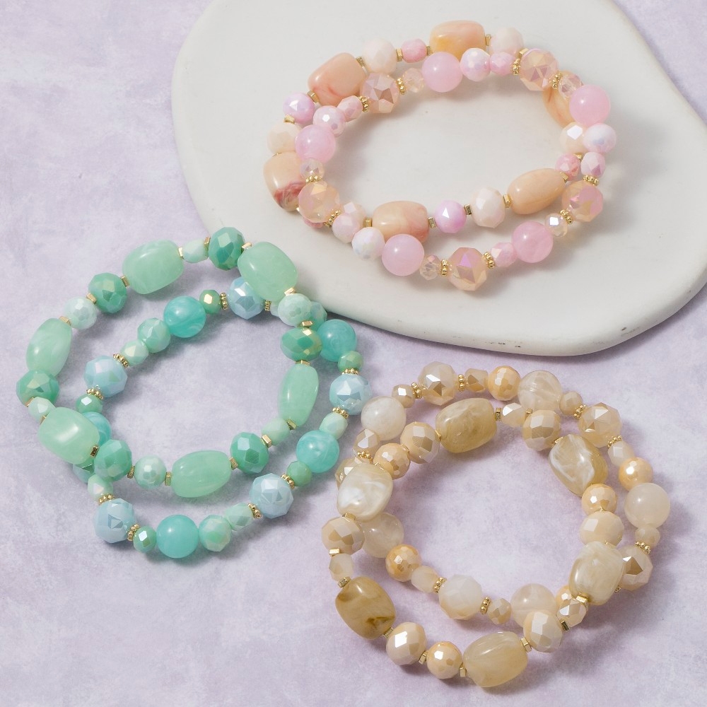• Unleash your inner fashionista, this stretch bracelet embodies a sophisticated mixed faceted crystal bead set design. This item is a great way to add some texture and dimension to any outfit. Available in LG, NA, PK. This item is sold in packs of 1.