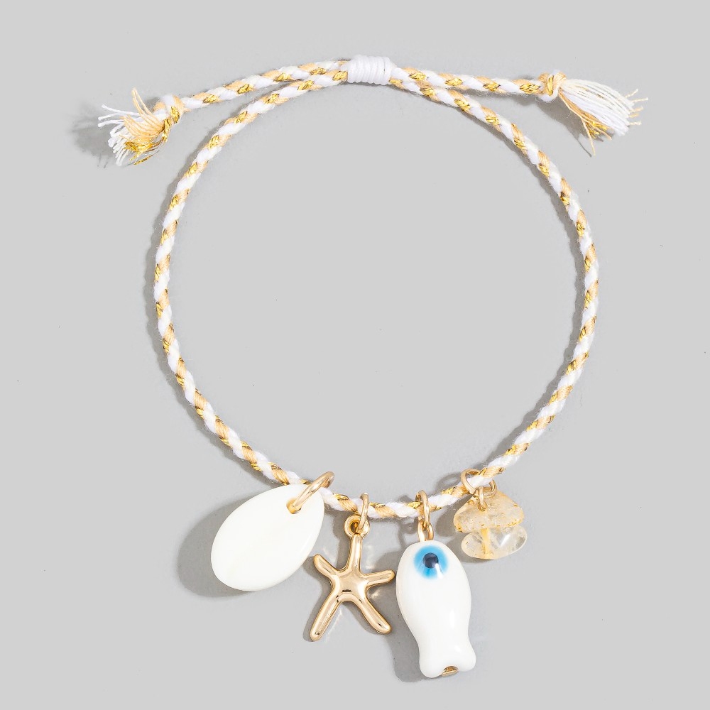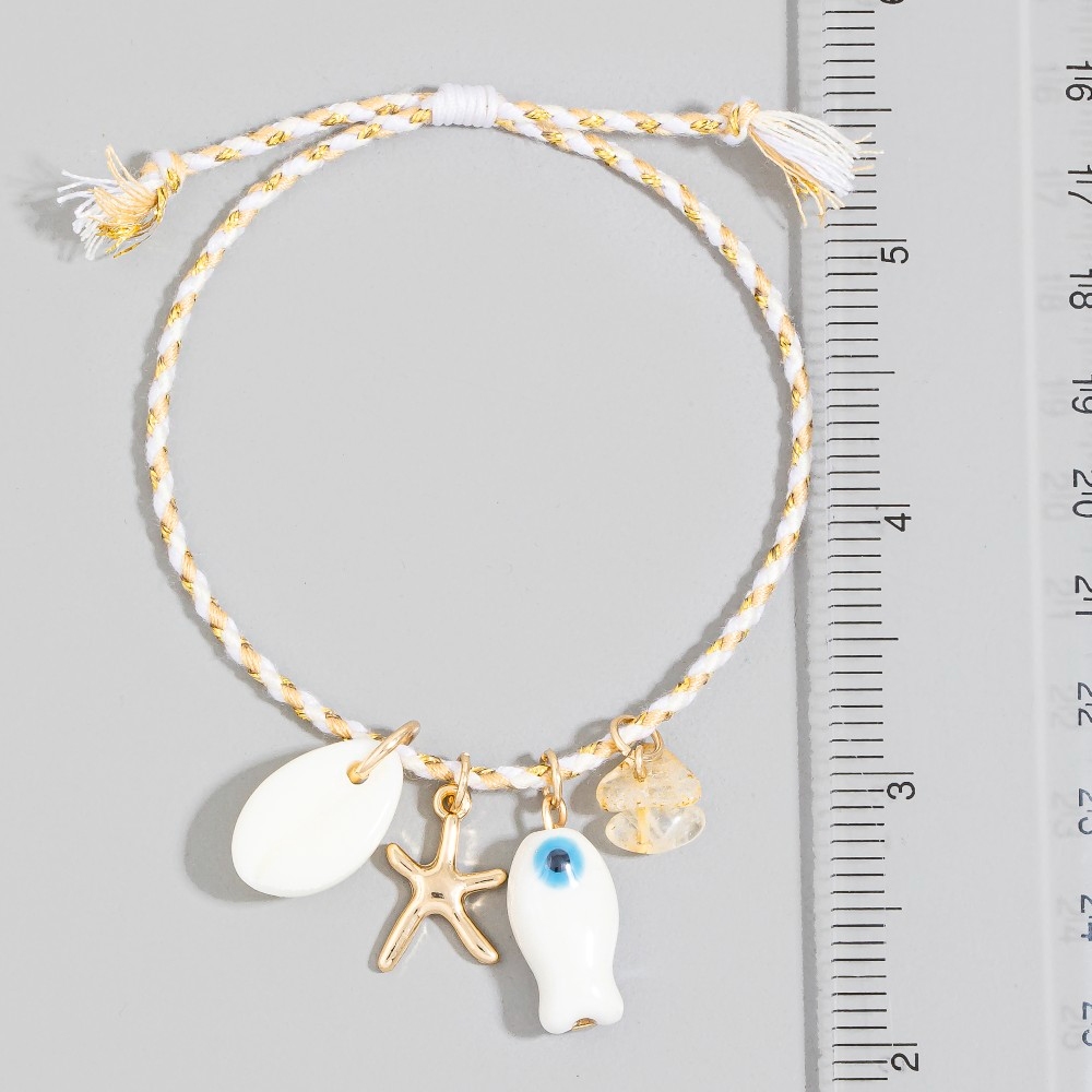 • Perfect for any occasion, this bracelet features an exceptional mixed metallic and ceramic sea life charms cord design. Achieve a perfect blend of style and sophistication with this versatile bracelet, a fashion-forward choice for any occasion. Available in SG. This item is sold in packs of 1.