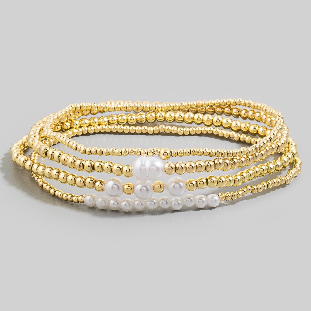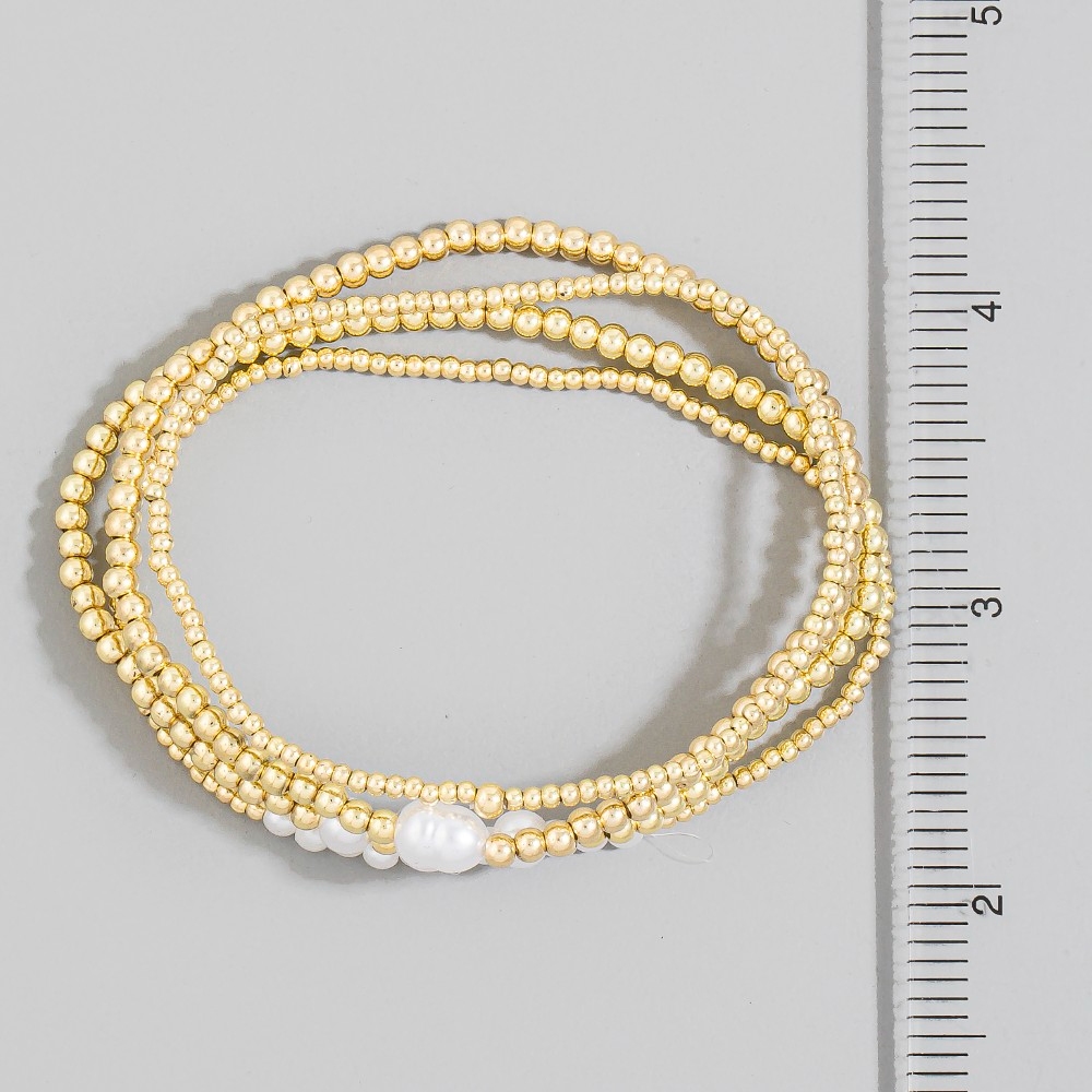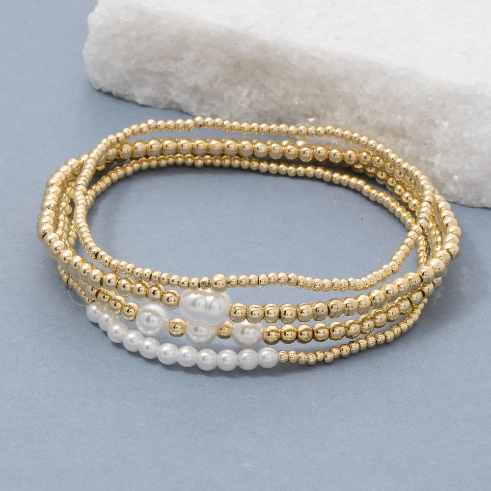 Metallic And Pearl Beaded Elastic Bracelet Set