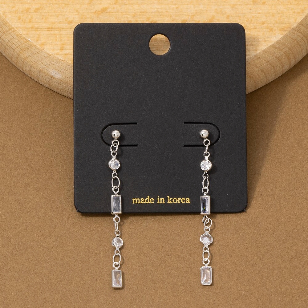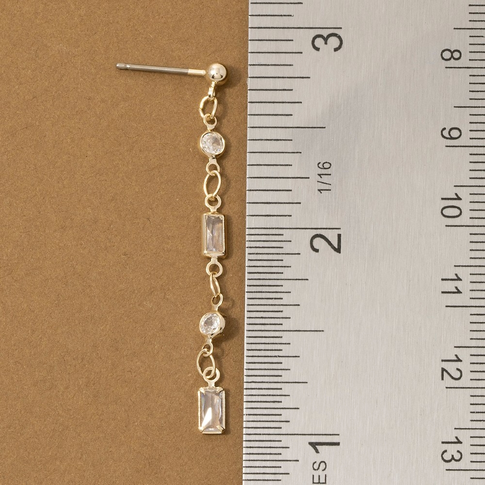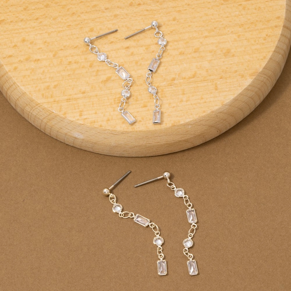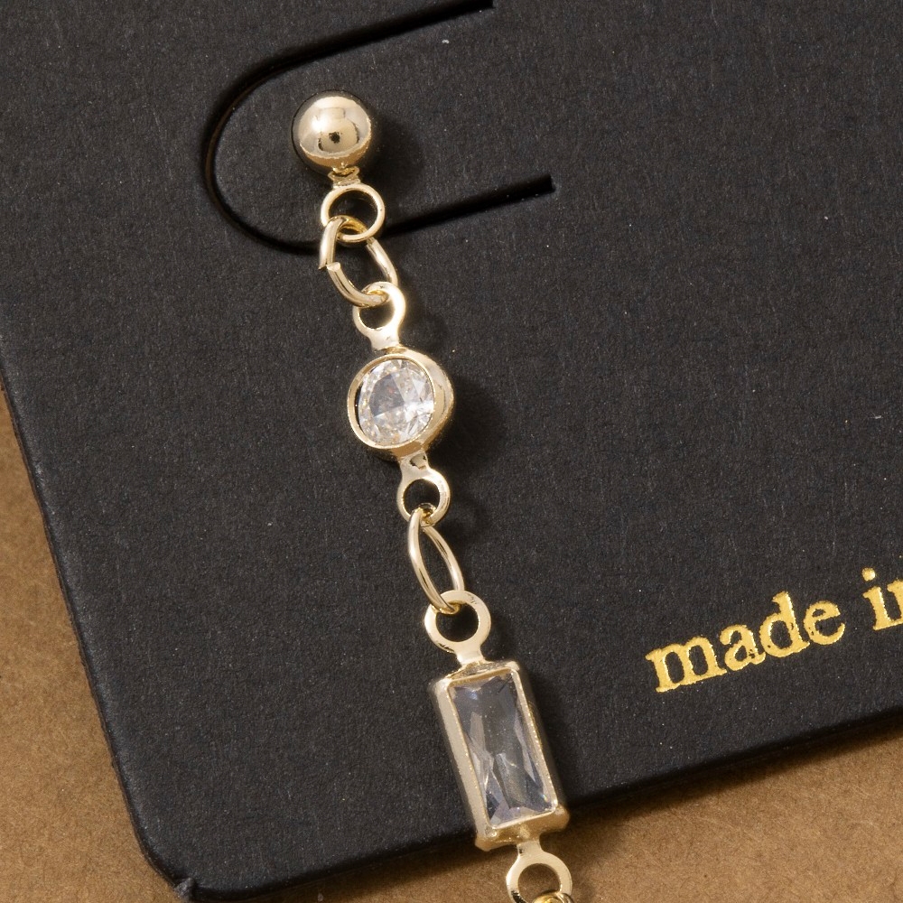 Make a statement, this pair of drop earrings incorporates a remarkable mixed round & baguette cubic zirconia chain design. Perfect for dressing up or down, this versatile pair of drop earrings adds a touch of sophistication to any look. Available in G, S. This item is sold in packs of 1.
