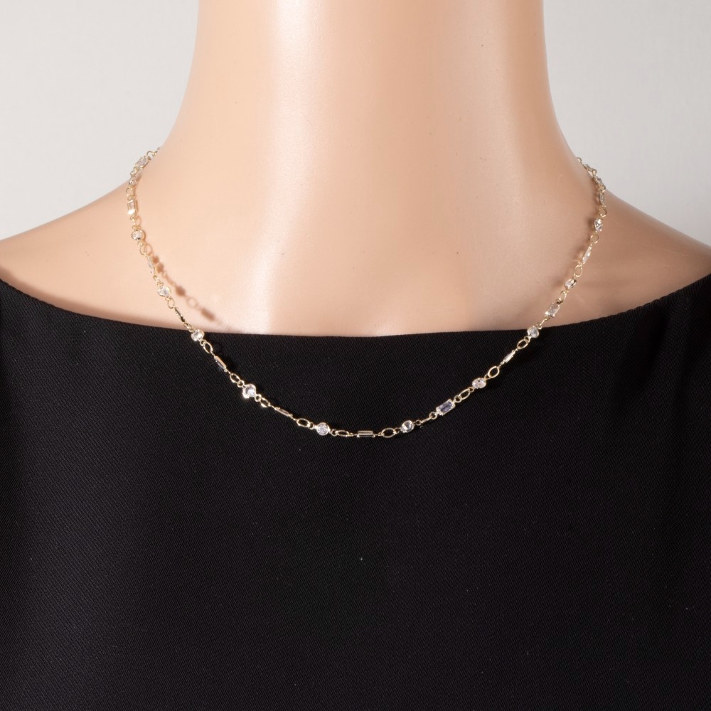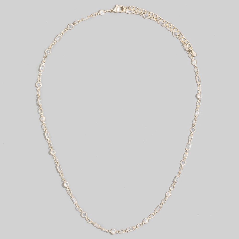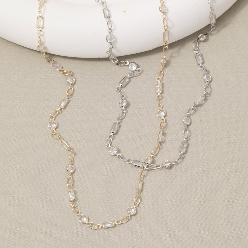 A modern classic, this necklace showcases a breathtaking mixed round & baguette cubic zirconia station design. Infuse your ensemble with a touch of sophistication using this versatile necklace, a game-changer in the world of fashion. Available in G, S. This item is sold in packs of 1.
