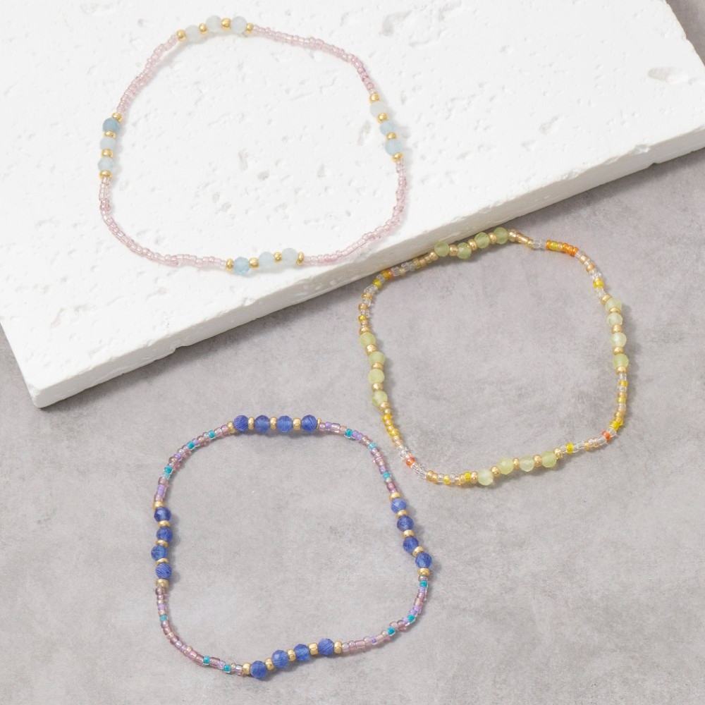 • This stretch bracelet is made with 80% Glass and 20% Gemstone.