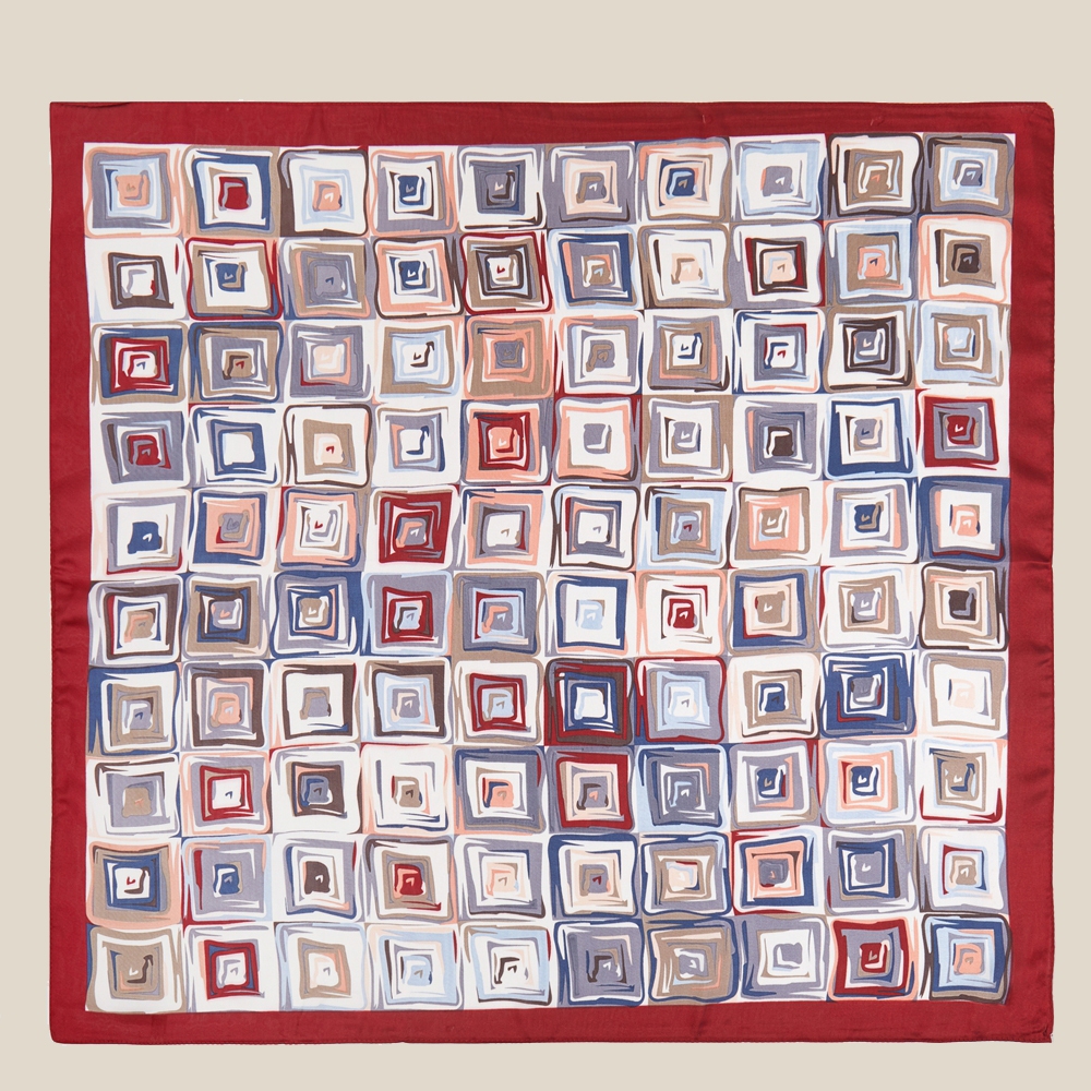 A timeless piece that will never go out of style, this scarf features an exceptional modern abstract square art print bandana design. A versatile scarf that's perfect for any occasion, adding a touch of elegance and style to any outfit. Available in BL, MU, RD, TP. This item is sold in packs of 3.