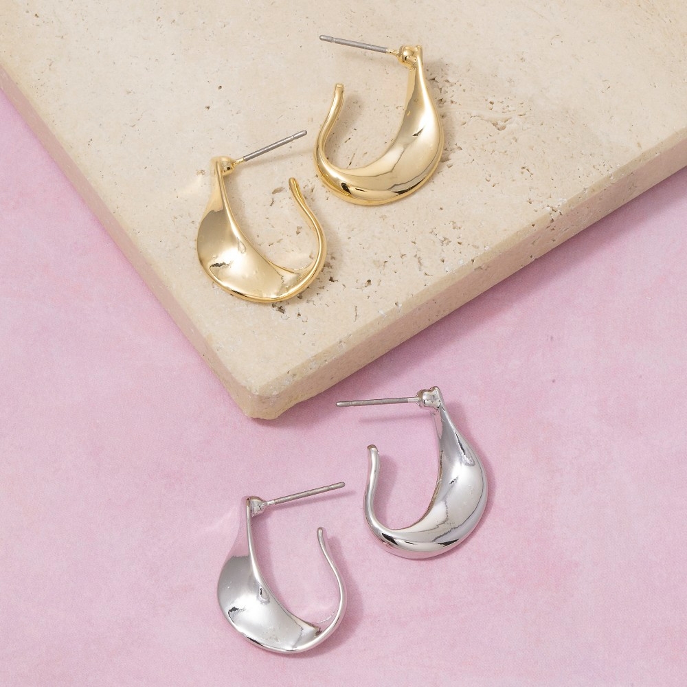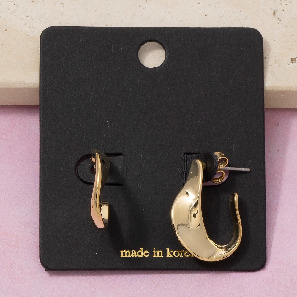 - The perfect way to showcase your unique style, this pair of hoop earrings includes a stunning molten wave open design. The perfect way to elevate any outfit, this pair of hoop earrings adds a touch of elegance and style. This item is sold in packs of 12.