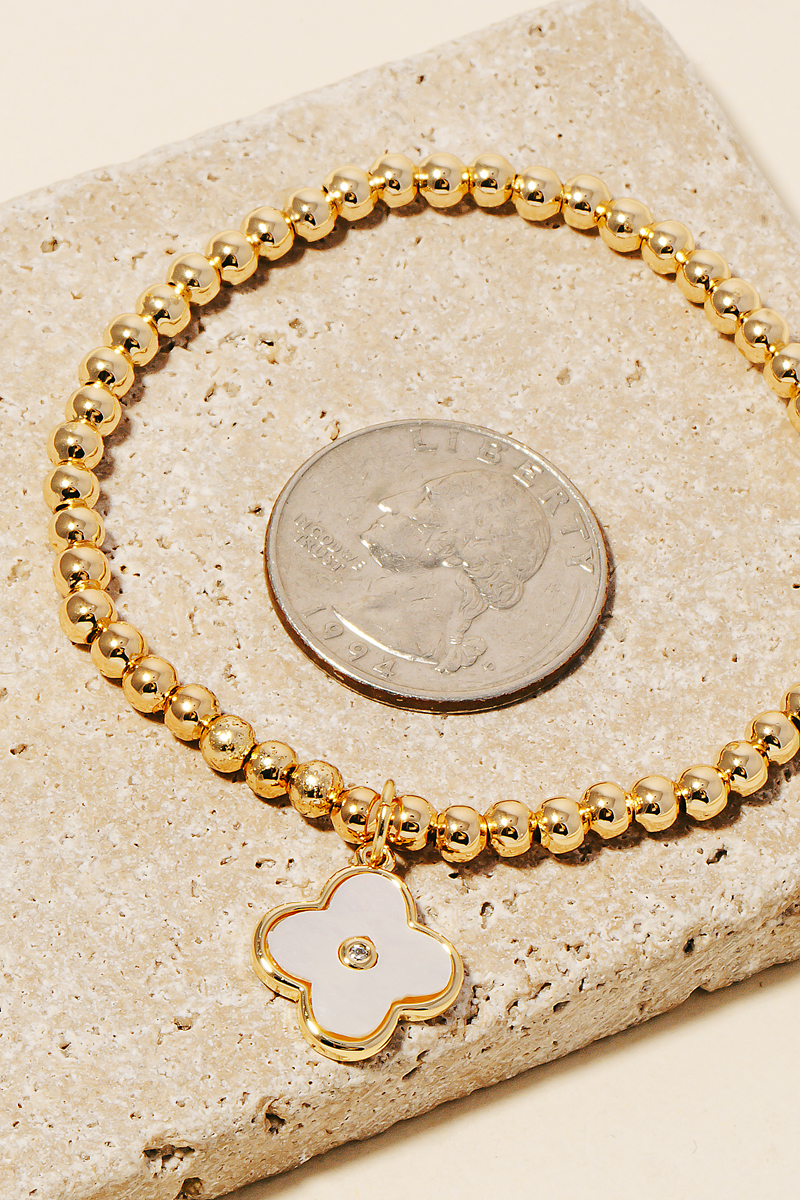 - Perfect for any occasion, this bracelet evokes a captivating mother of pearl clover charm bead design. A must-have bracelet that adds a unique flair to any look. Available in GM. This item is sold in packs of 2.