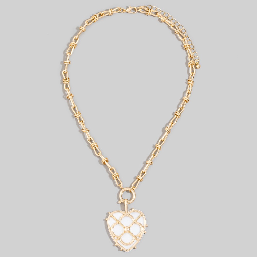 • Make a bold statement, this pendant necklace possesses a fine mother of pearl heart clover design. Perfect for adding a pop of color or texture to any outfit, this pendant necklace is a must-have. This item is sold in packs of 1.