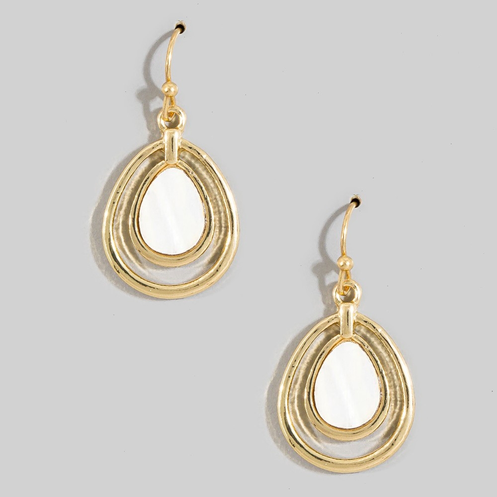 This piece is perfect for those who want to showcase their unique style, this pair of drop earrings includes a stunning mother of pearl layered teardrop earrings design. Embrace fashion flexibility with this versatile pair of drop earrings, designed to effortlessly enhance the sophistication of any outfit. Available in GDCRM. This item is sold in packs of 1.