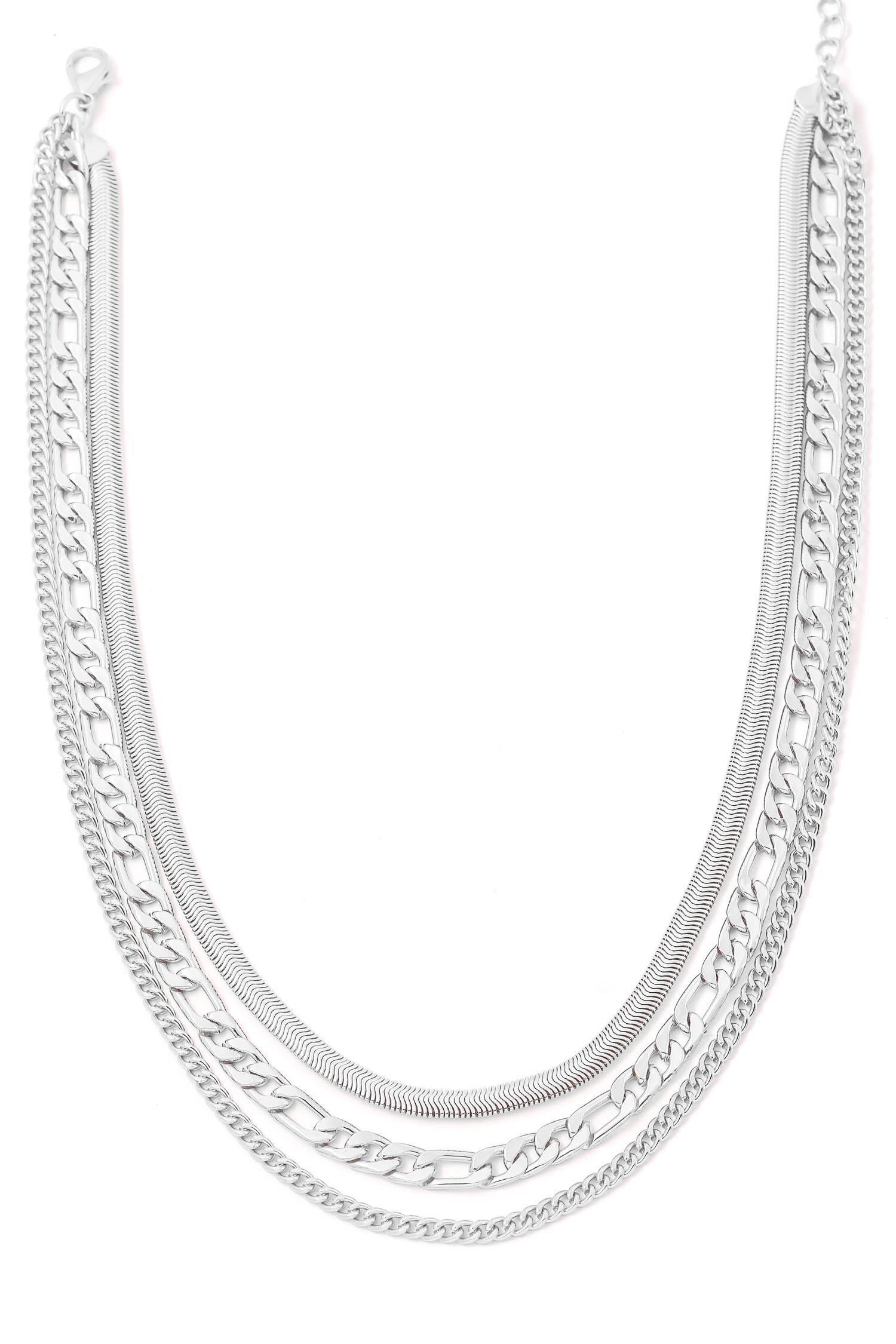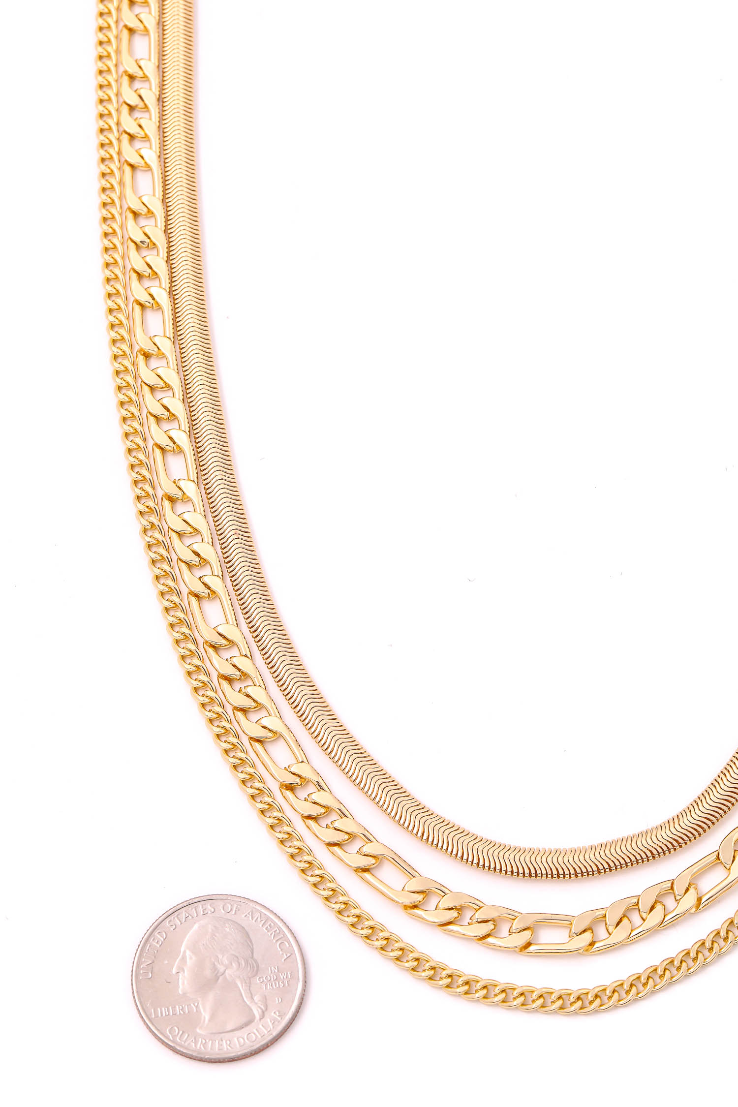 • "This is a guaranteed show stopper must have necklace has a unique multi strand chain link necklace design. Perfectly fitting for this Fall season! Available in G and S. "