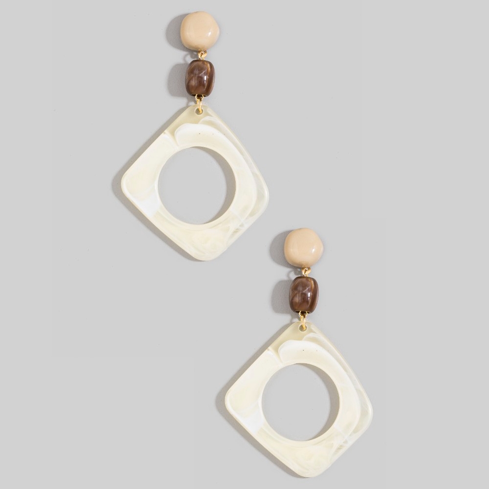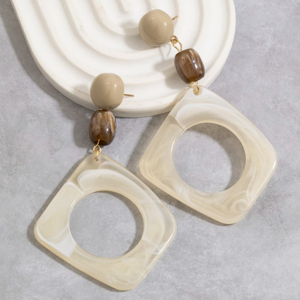 This pair of drop earrings is made with 90% Platic and 10% Metal.