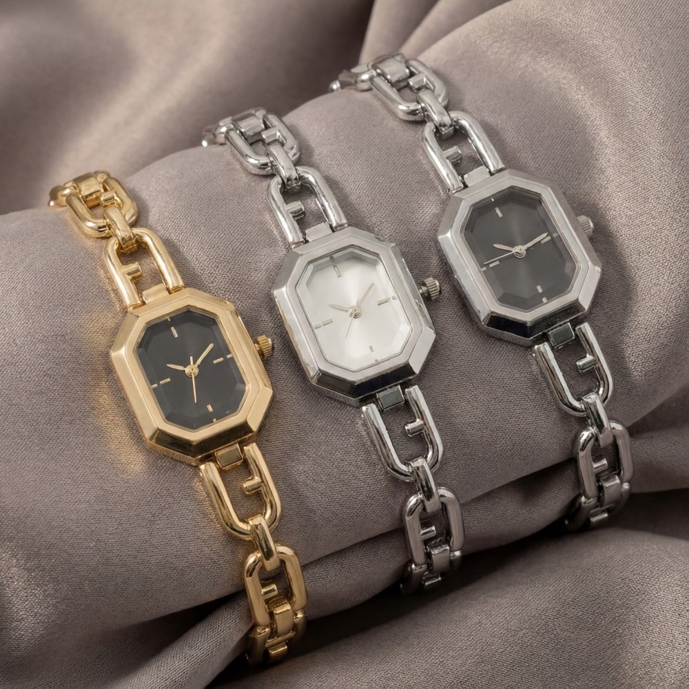 • A classic design with a contemporary twist, this displays a unique octagon case chain link watch design. This item is ideal for those who want to add some personality to their outfits without being too bold. Available in GBK, SBK, SWH. This item is sold in packs of 1.
