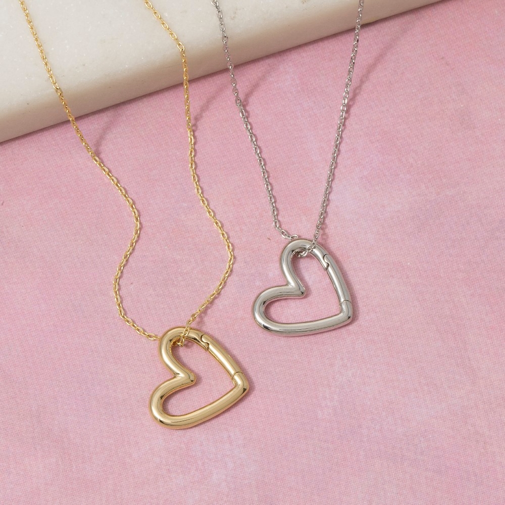 • Make a bold statement, this pendant necklace introduces an exceptional open heart carabiner design. Master the art of accessorizing with this versatile pendant necklace, a key element for achieving a chic and polished look. Available in GOLD, 2SILVER. This item is sold in packs of 1.