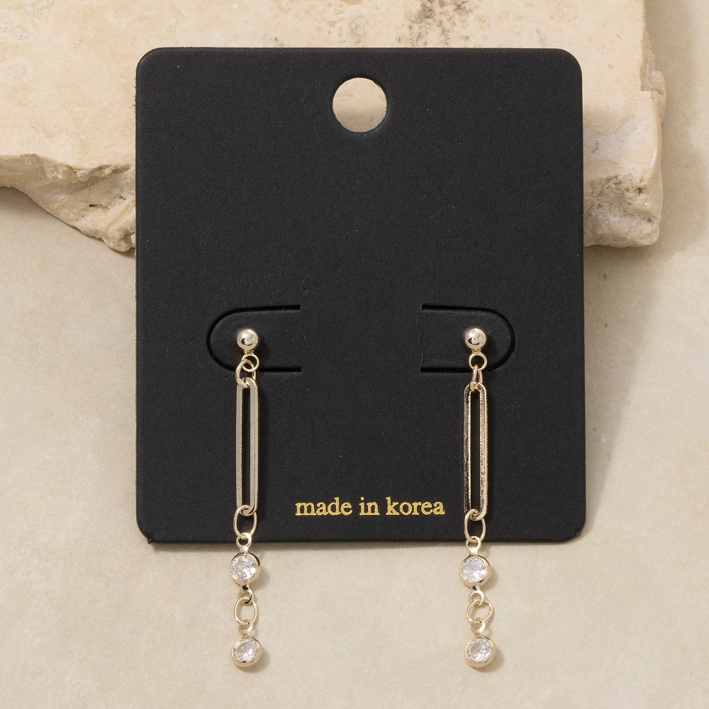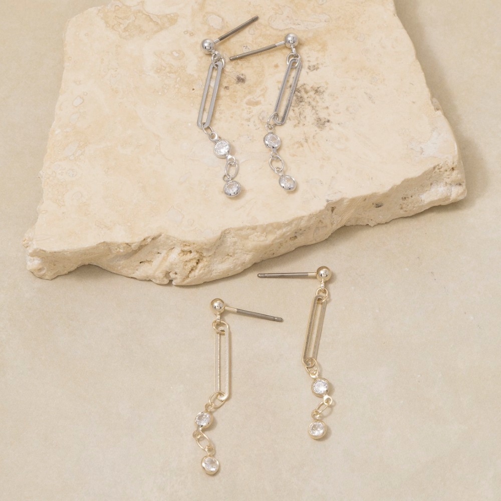 This piece is the epitome of sophistication and elegance, this pair of drop earrings incorporates a flawless open rectangle link & cubic zirconia design. The perfect way to complete any outfit, whether you're dressing up or keeping it casual. Available in G, S. This item is sold in packs of 1.