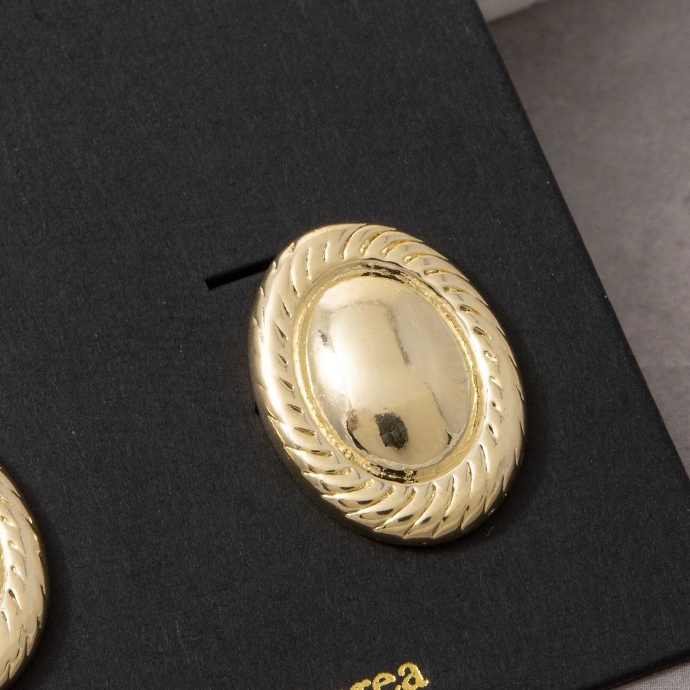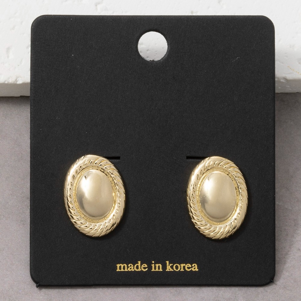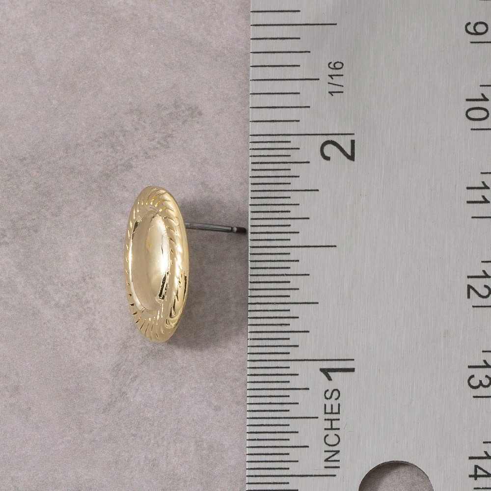 Uniquely designed and endlessly stylish, this pair of stud earrings offers a remarkable oval dome with rope border design. This versatile pair of stud earrings adds a touch of elegance to any outfit. Available in G, S. This item is sold in packs of 1.
