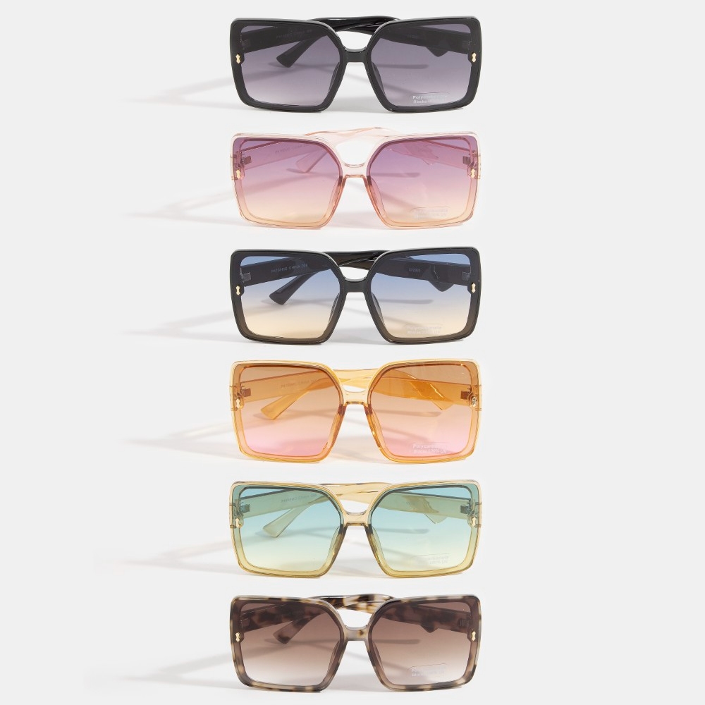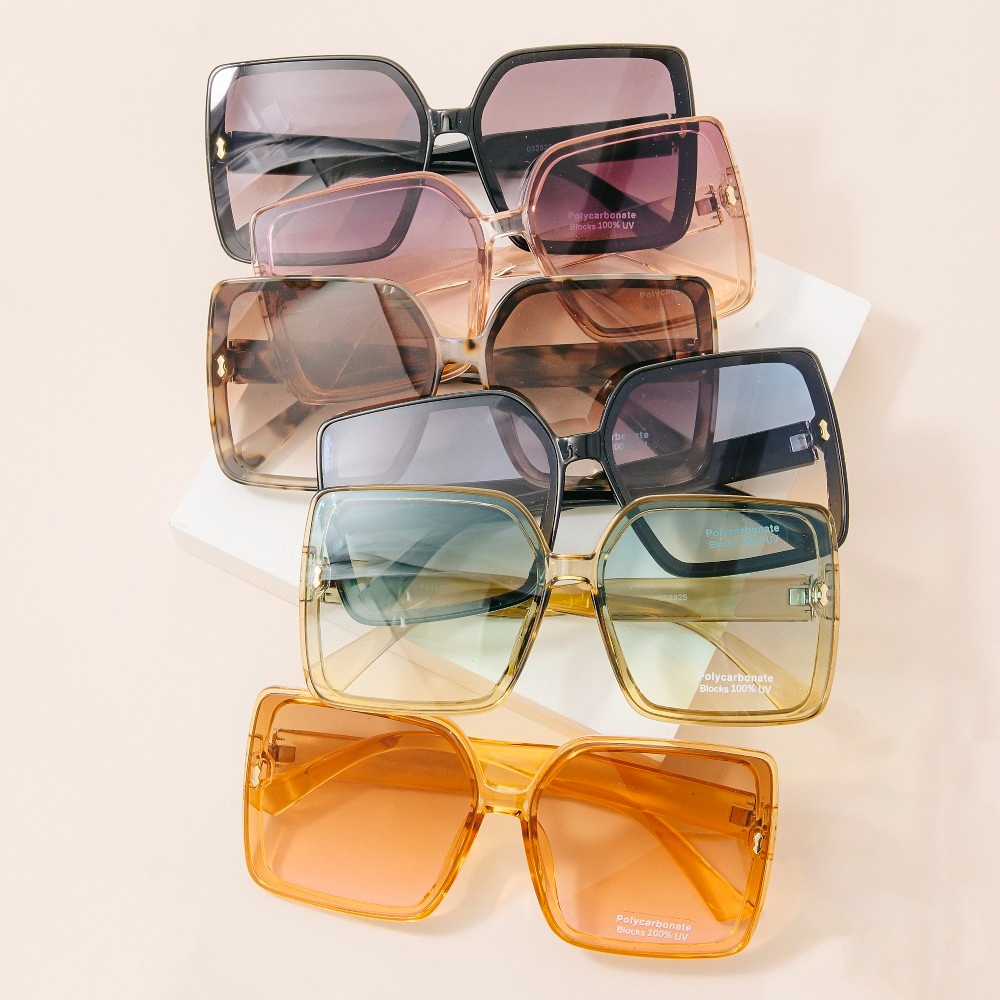 Elevate your style with something unique and daring, this set of sunglasses features an exceptional oversized square sunglasses with gold corner charm design. This versatile set of sunglasses adds a touch of elegance to any outfit. Available in ASSORTED. This item is sold in packs of 12.
