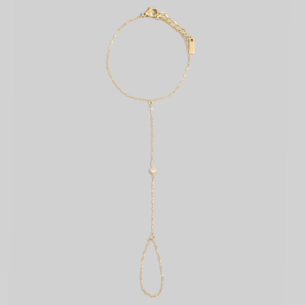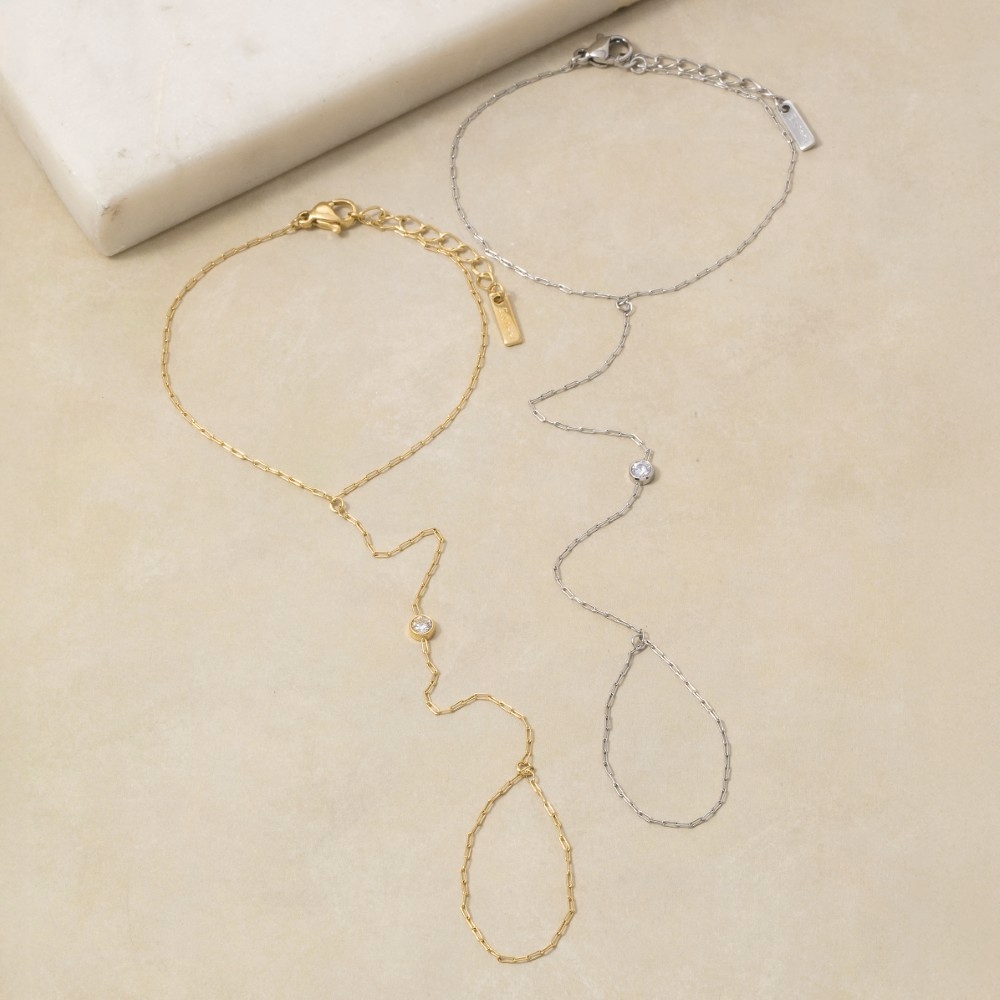 - A stunning piece that is sure to turn heads, this bracelet incorporates a flawless paperclip chain hand chain finger ring design. This bracelet is a great way to add some flair to your outfit without going over the top. Available in GD, RH. This item is sold in packs of 1.