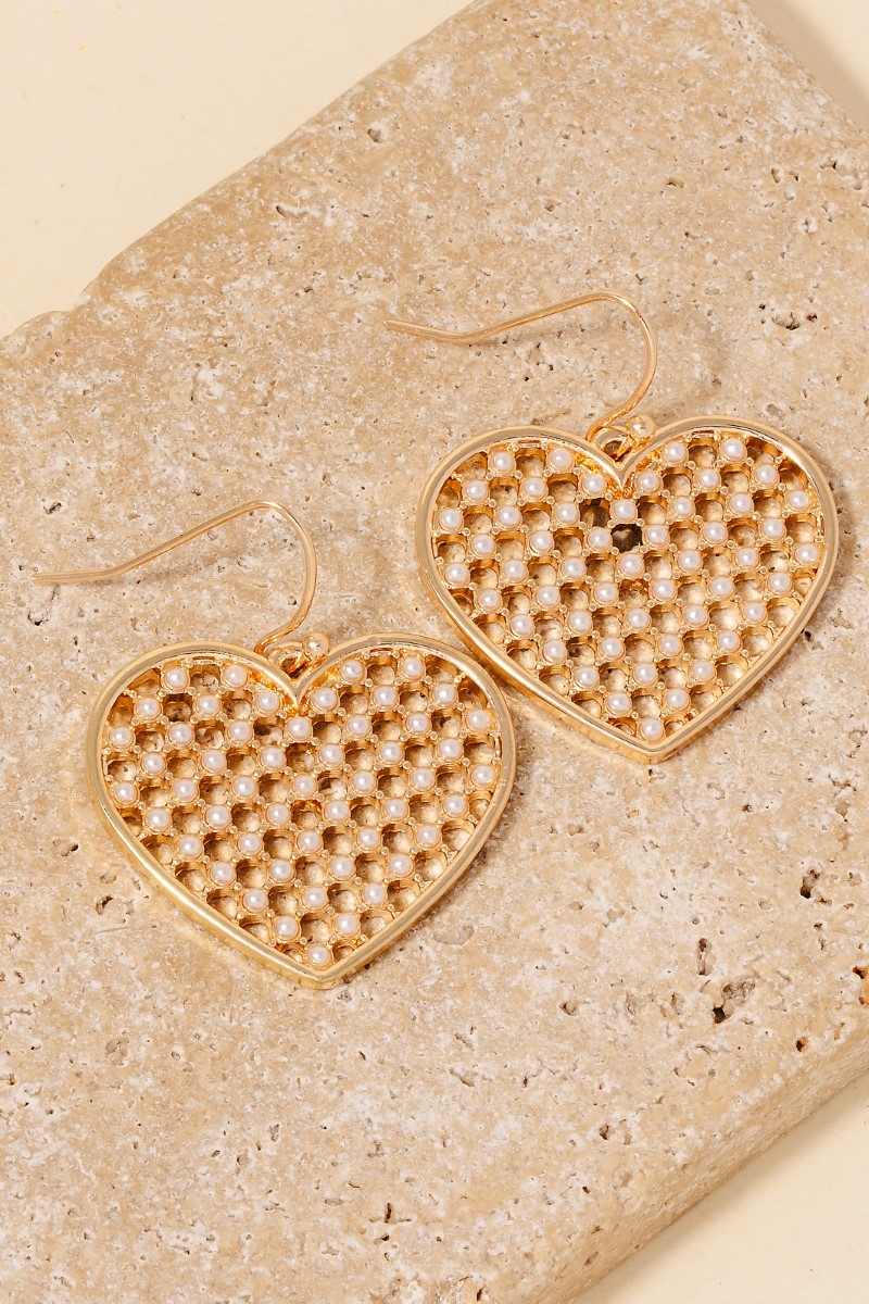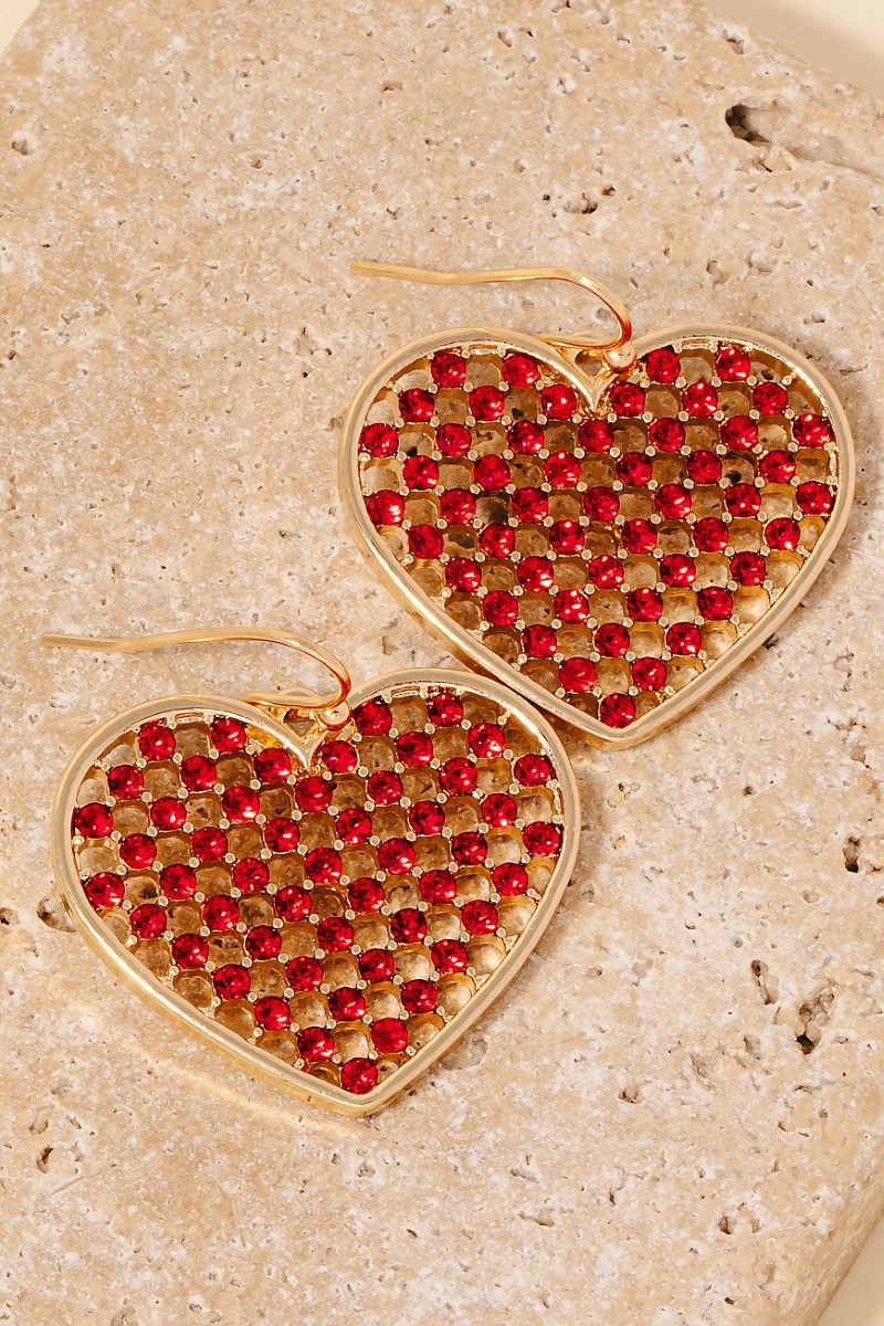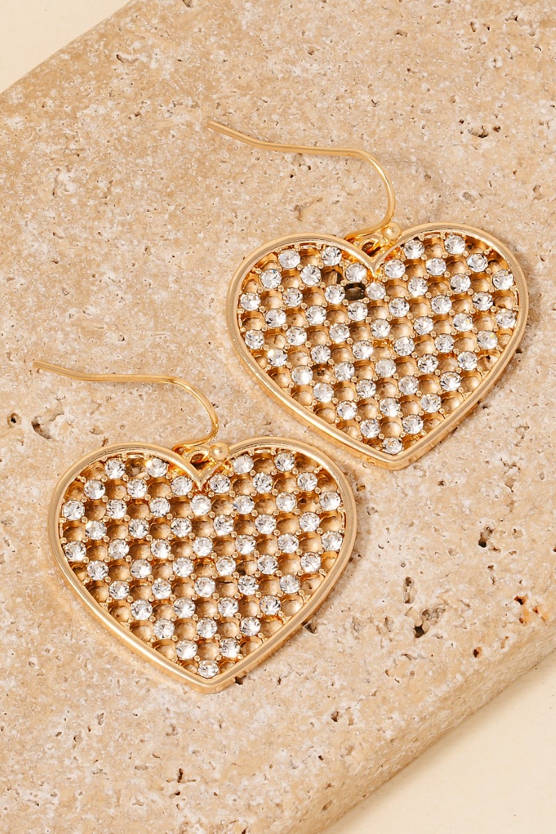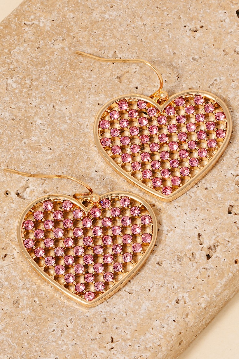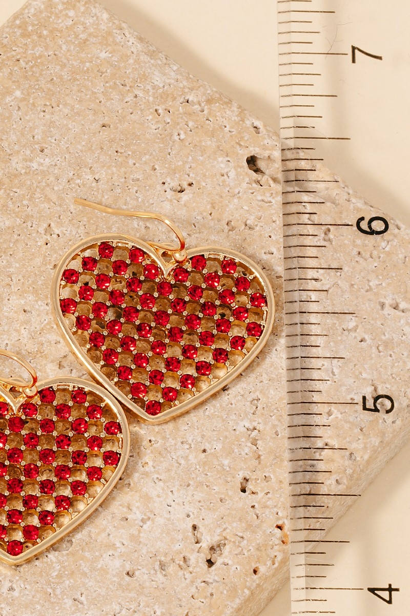 This pair of dangle earrings showcases a unique pave mesh heart charm style. Delight in the nuanced details that make this pair of dangle earrings a testament to fine design and impeccable taste.