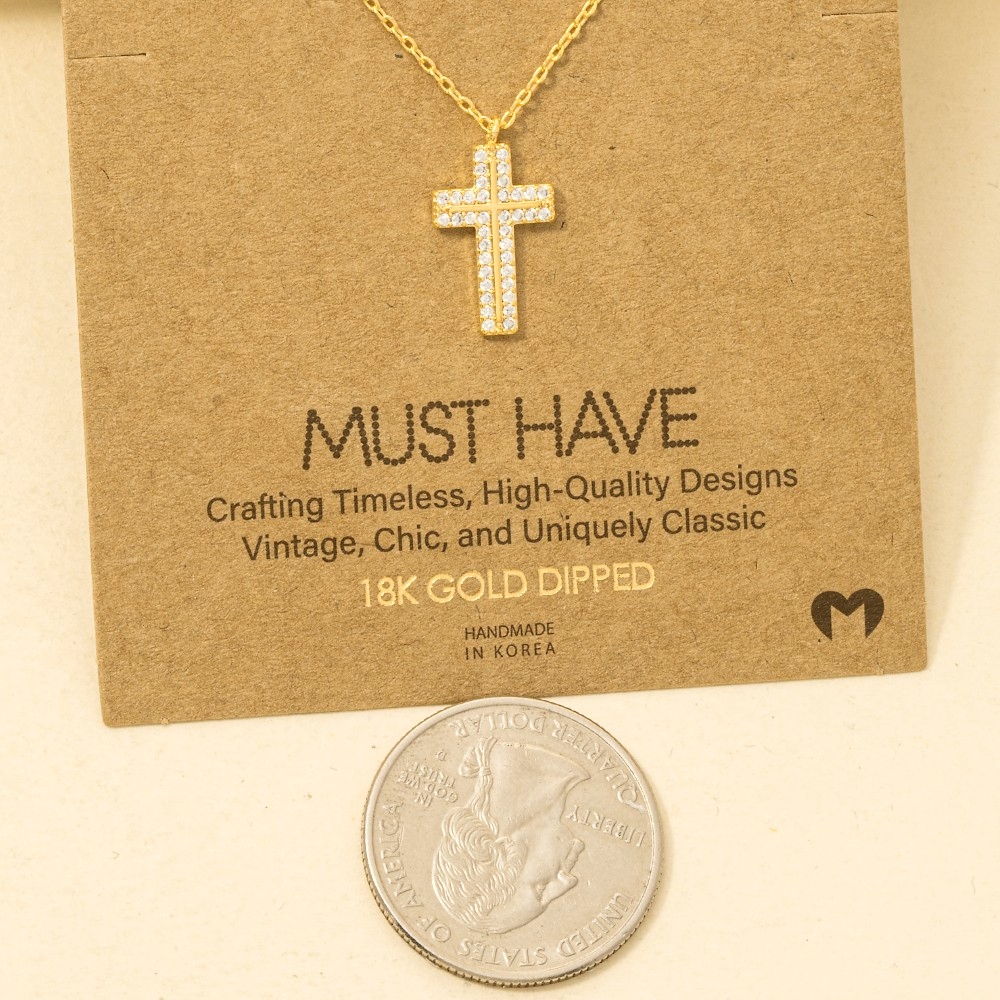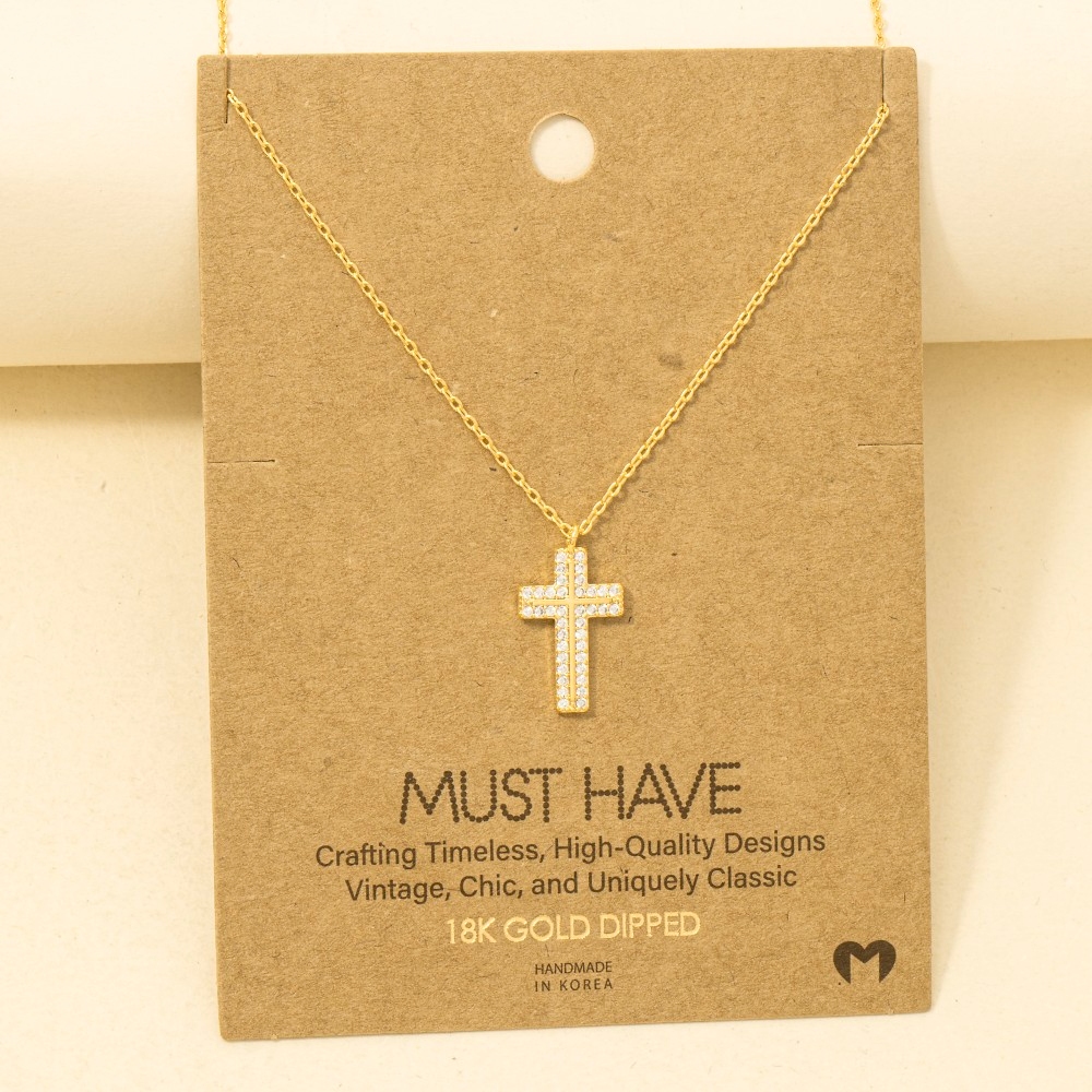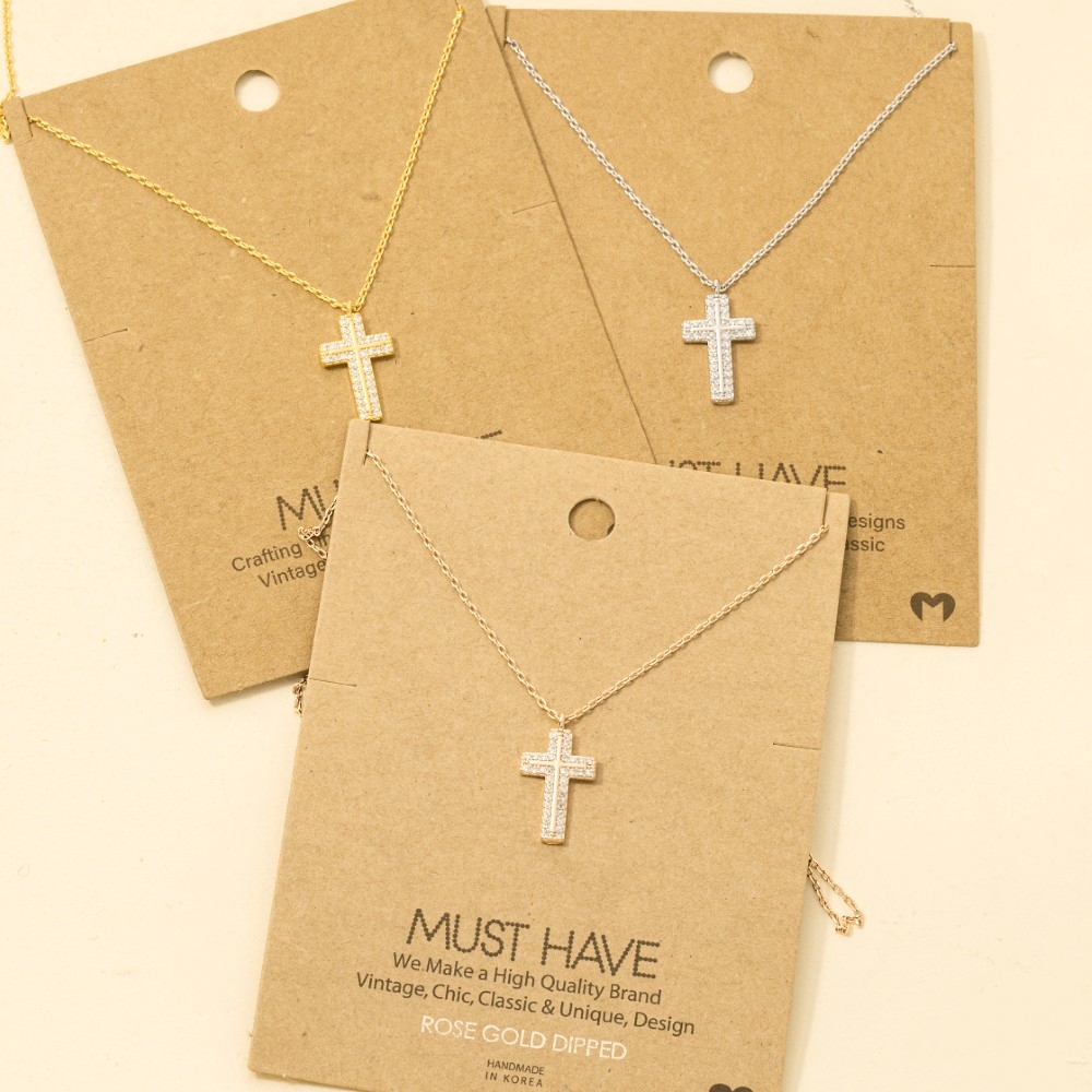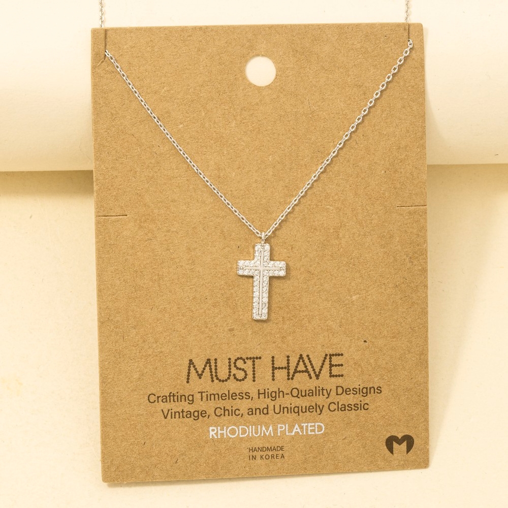 A contemporary masterpiece, this trending necklace offers a remarkable pave rhinestone cross pendant necklace design. This item is perfect for adding some color and vibrancy to any outfit. Available in G, R, S. This item is sold in packs of 1.