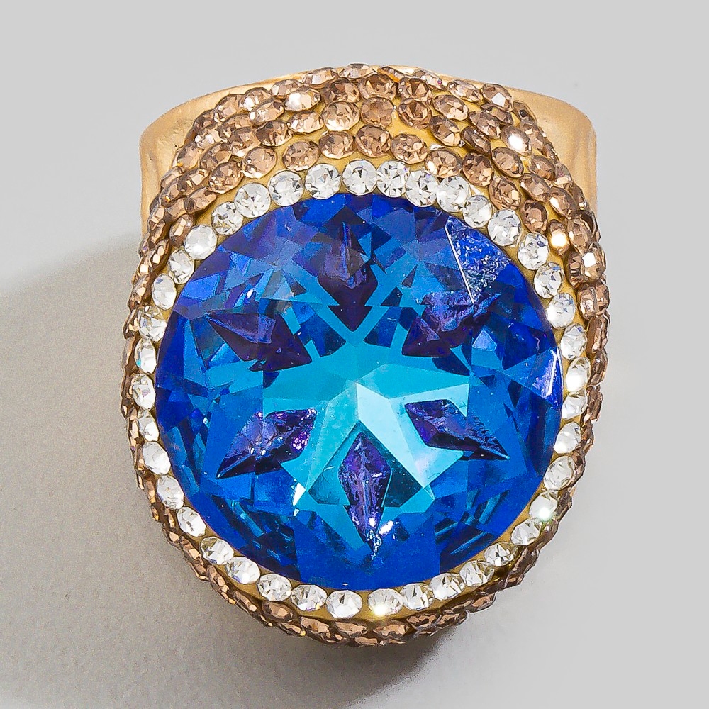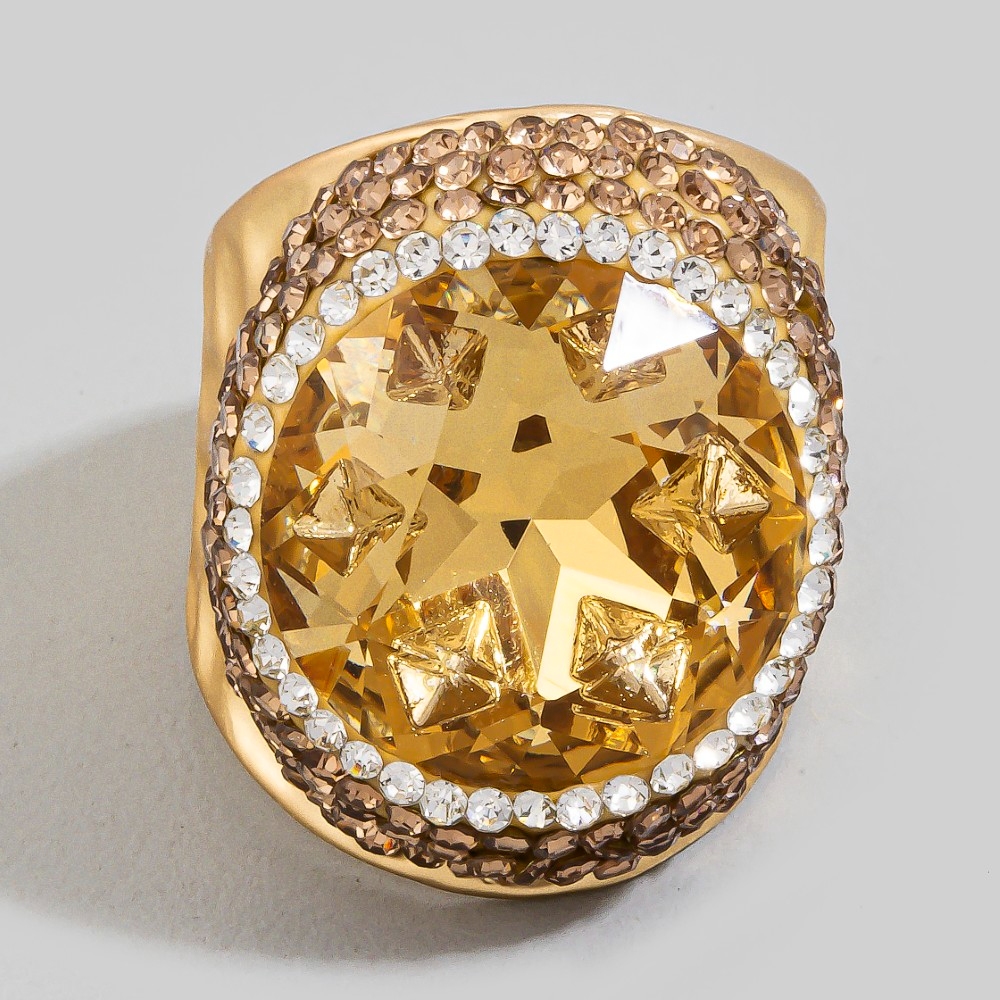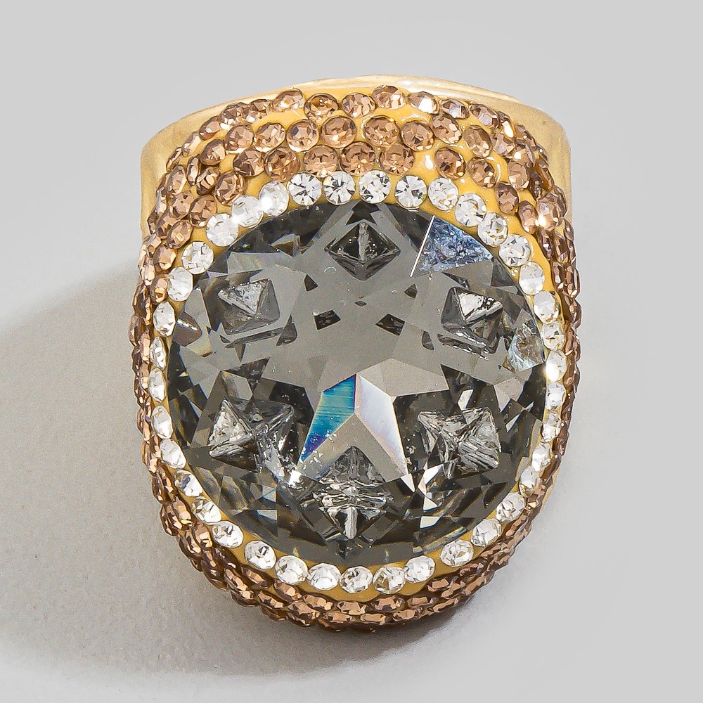A versatile and stylish addition to any wardrobe, this ring comes with a special pave round faceted glass crystal statement design. Unlock endless styling possibilities with this versatile ring, creating a signature look that speaks volumes. This item is sold in packs of 1.