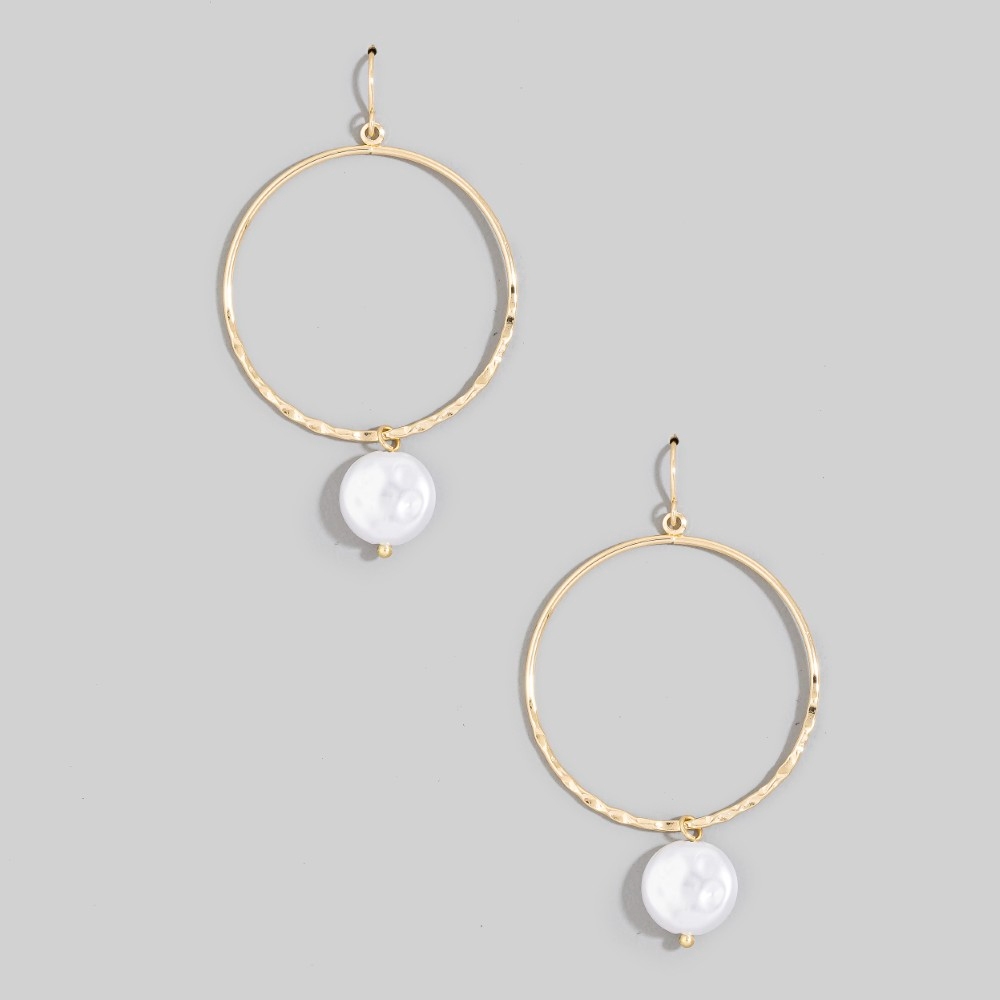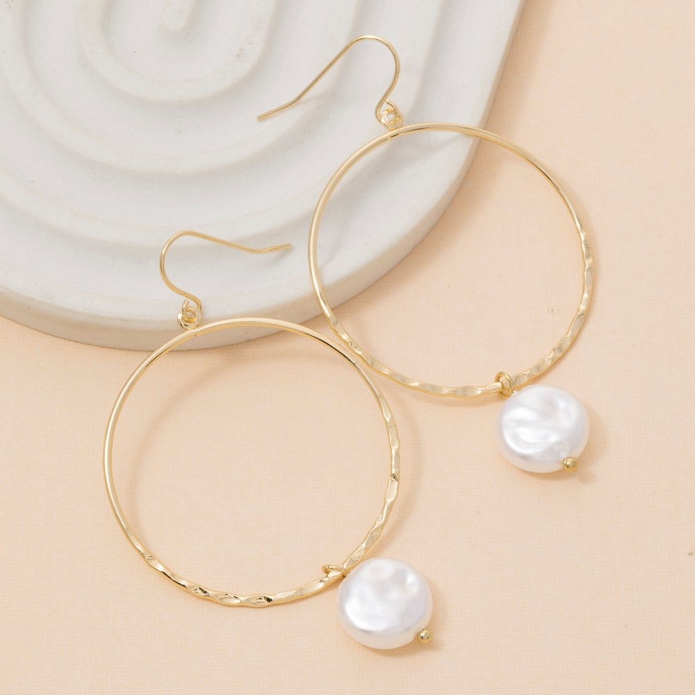 Guaranteed to add a touch of glamour to any outfit, this pair of dangle earrings exudes a refined pearl bead hoop design. Experience the transformative power of this versatile pair of dangle earrings, effortlessly enhancing the overall aesthetic of your outfit. Available in GP. This item is sold in packs of 1.